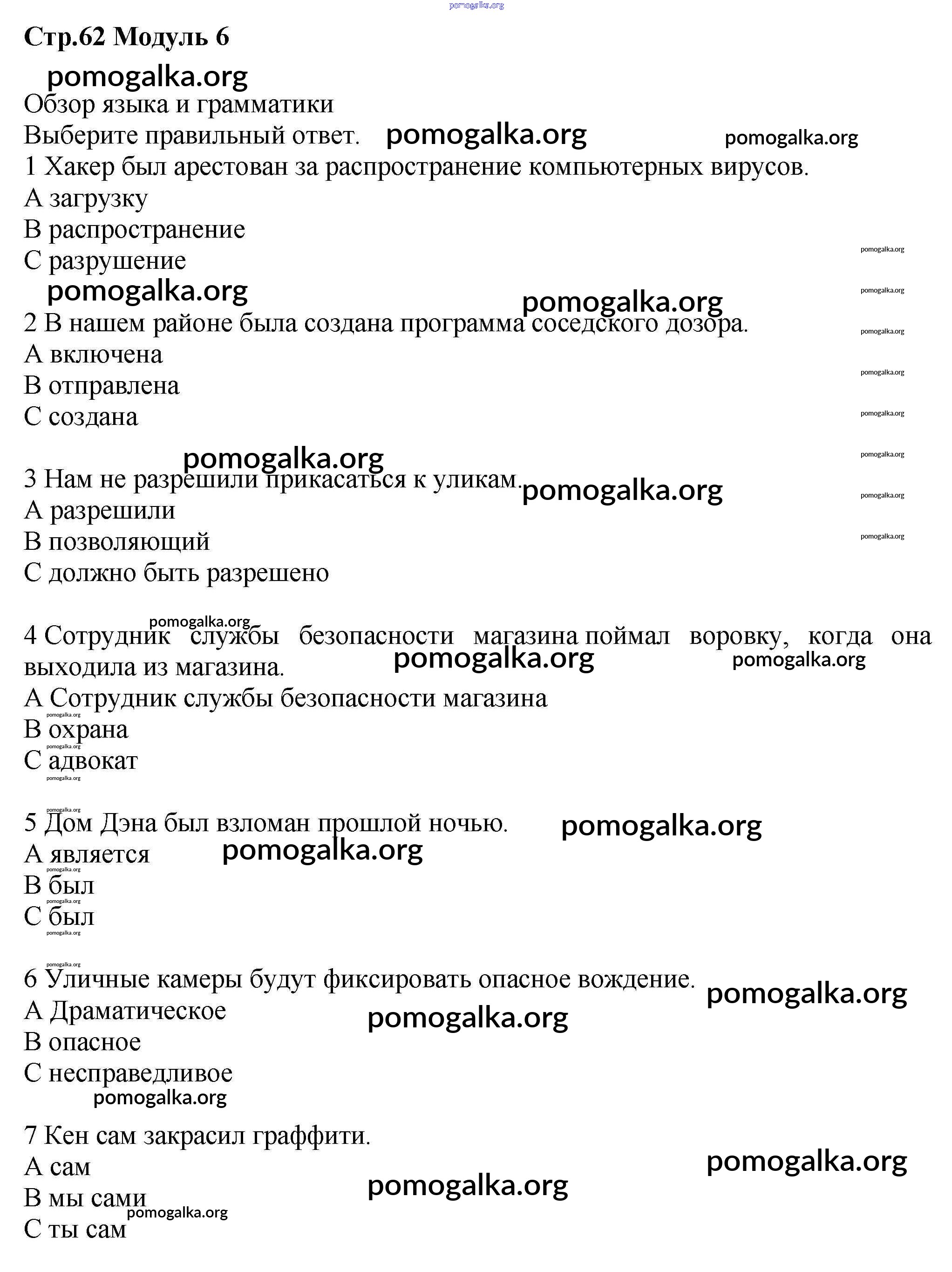 Готовые ответы - Английский язык 7 класс рабочая тетрадь Starlight Баранова К.М. - module 6 62
