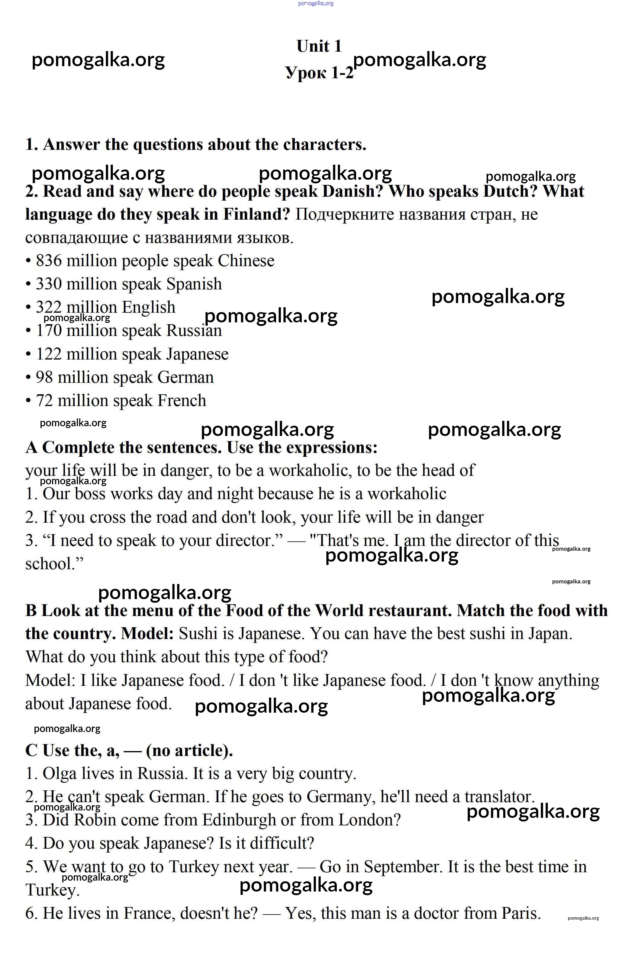 Готовые ответы - Английский язык 7 класс Кауфман рабочая тетрадь - unit 1 (урок) часть 1 1-2