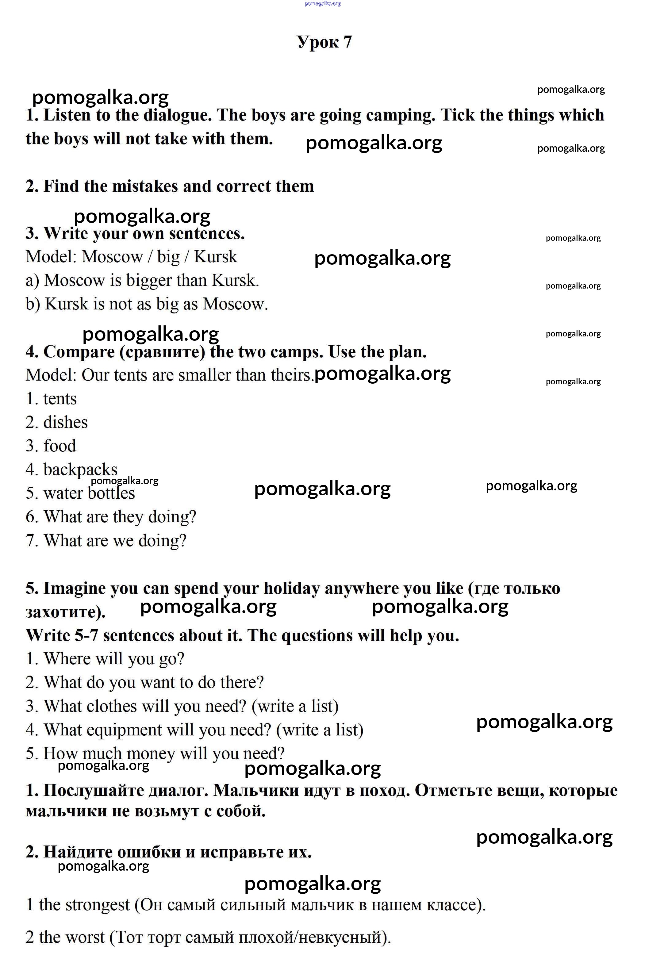 Готовые ответы - Английский язык 7 класс Кауфман рабочая тетрадь - unit 2 (урок) часть 1 7