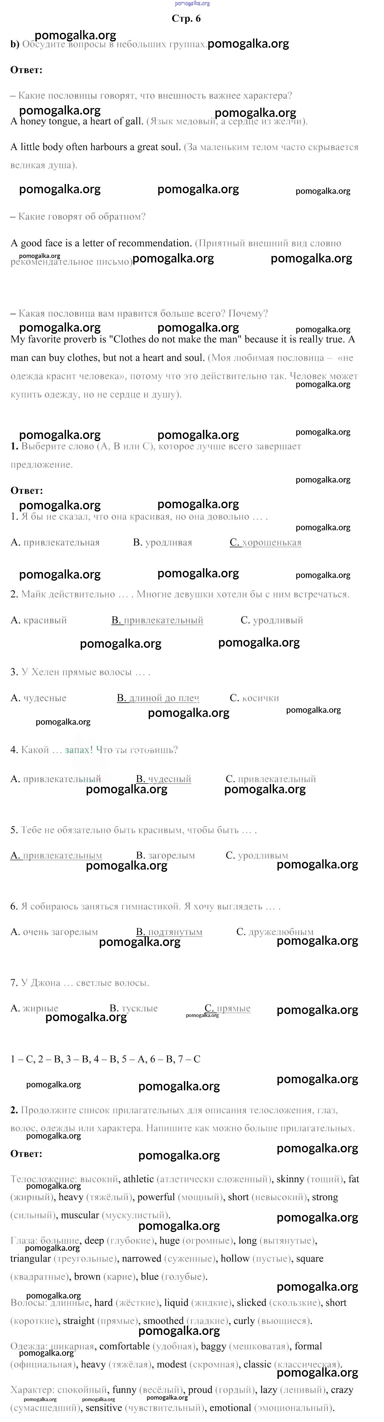 Готовые ответы - Английский язык 7 класс рабочая тетрадь Юхнель Н.В. - часть 1. страница 6