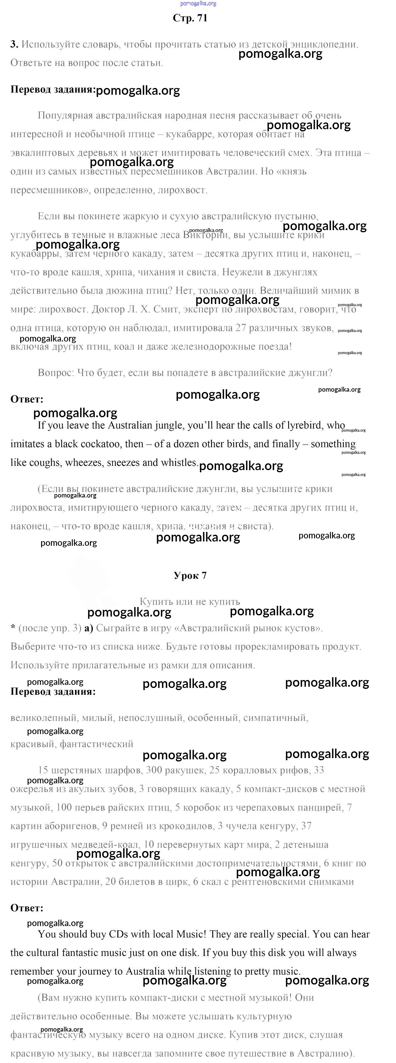 Готовые ответы - Английский язык 7 класс рабочая тетрадь Юхнель Н.В. - часть 2. страница 71