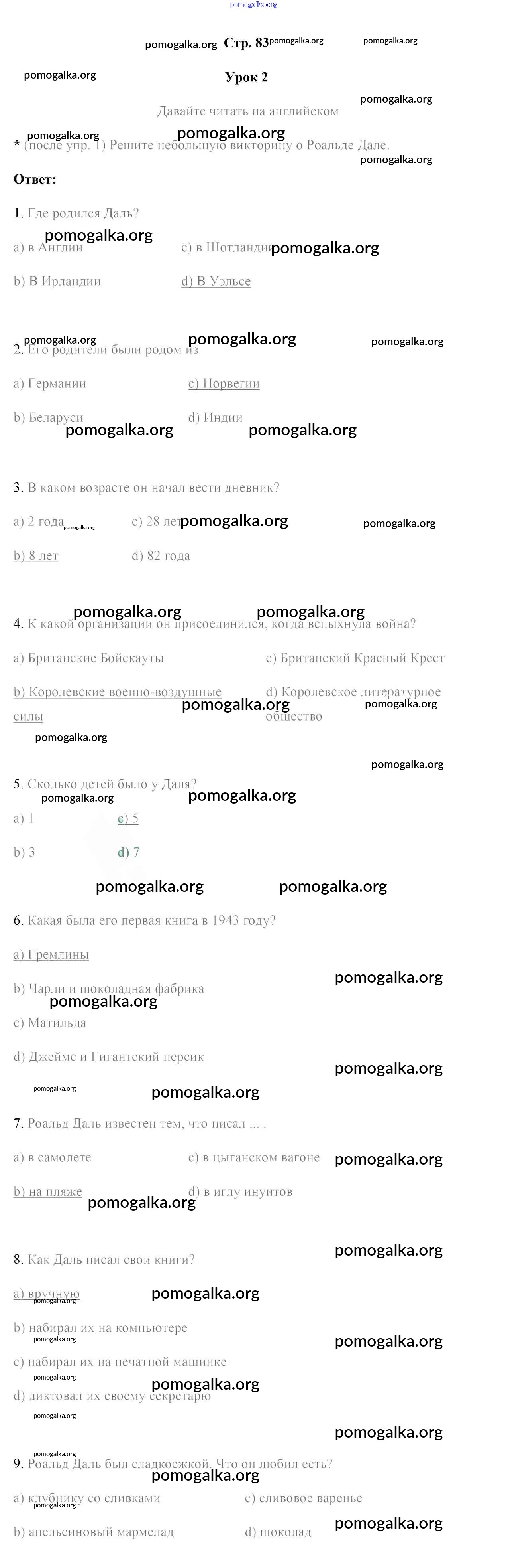 Готовые ответы - Английский язык 7 класс рабочая тетрадь Юхнель Н.В. - часть 2. страница 83