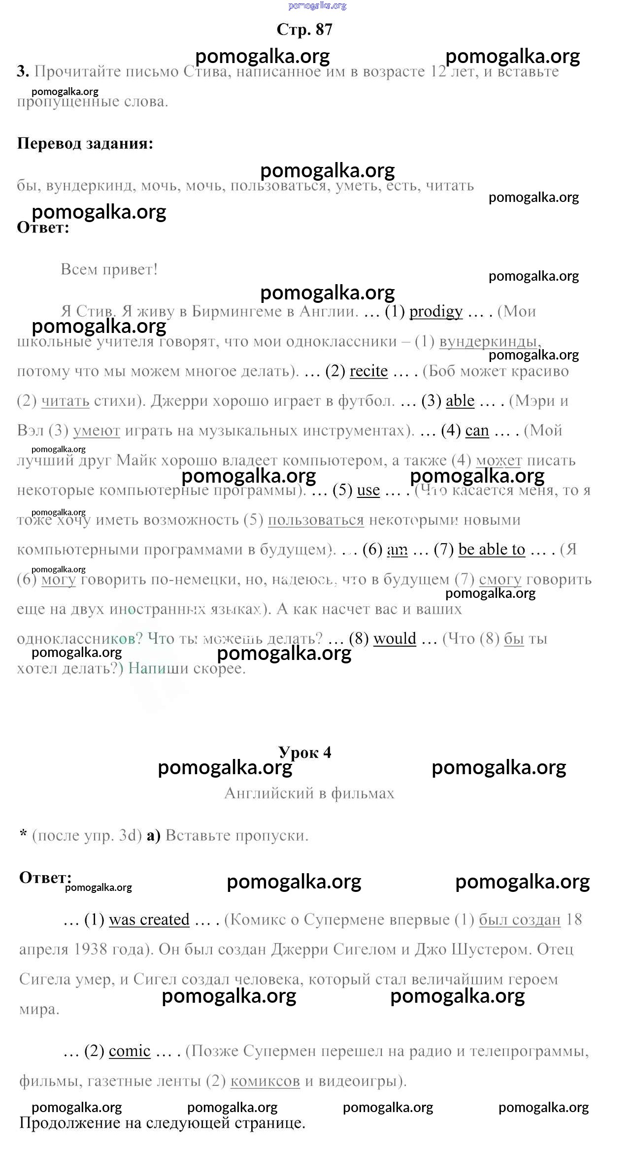 Готовые ответы - Английский язык 7 класс рабочая тетрадь Юхнель Н.В. - часть 2. страница 87