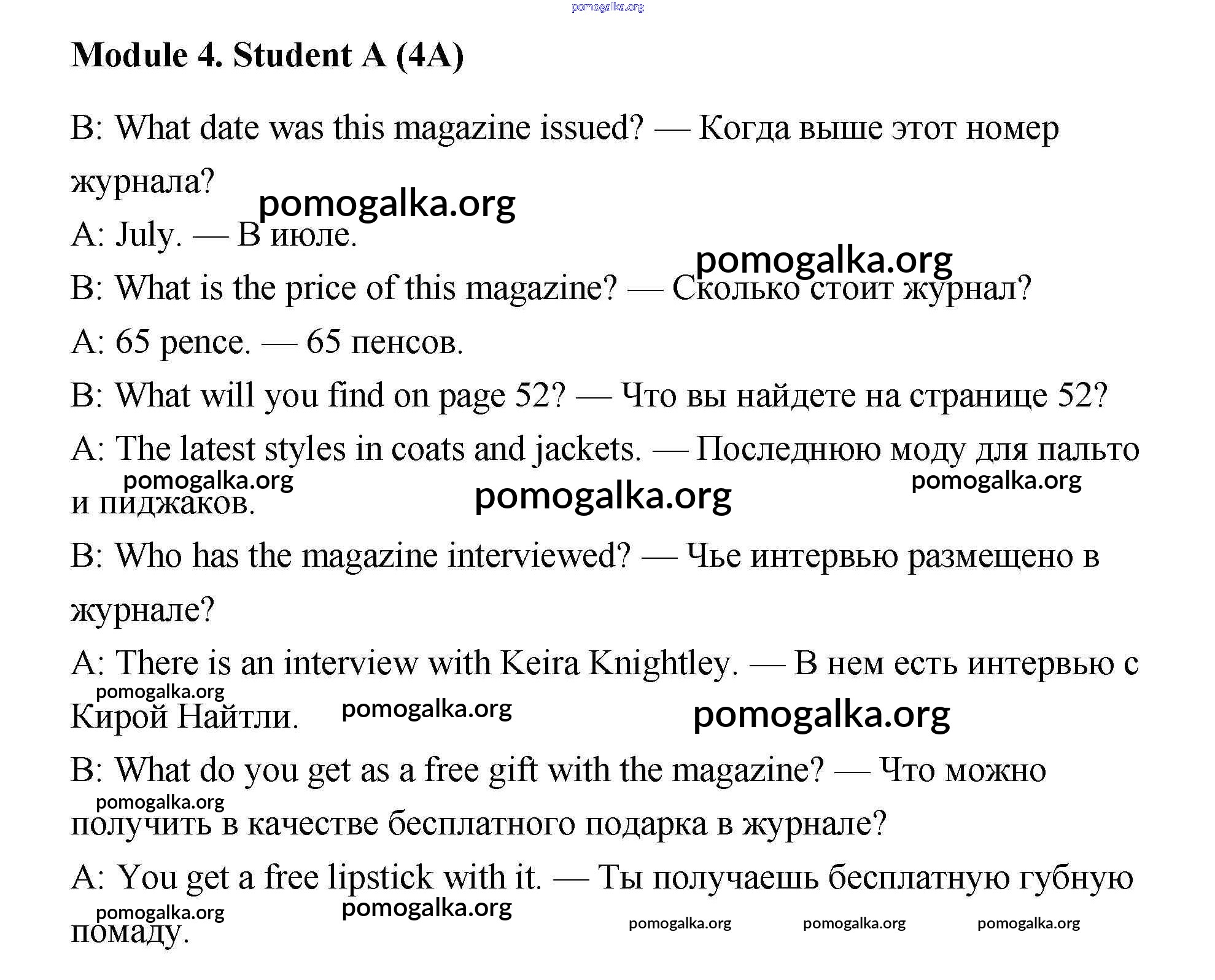 Готовые ответы - Английский язык 7 класс Ваулина Spotlight рабочая тетрадь - student A работа в парах (module) 4
