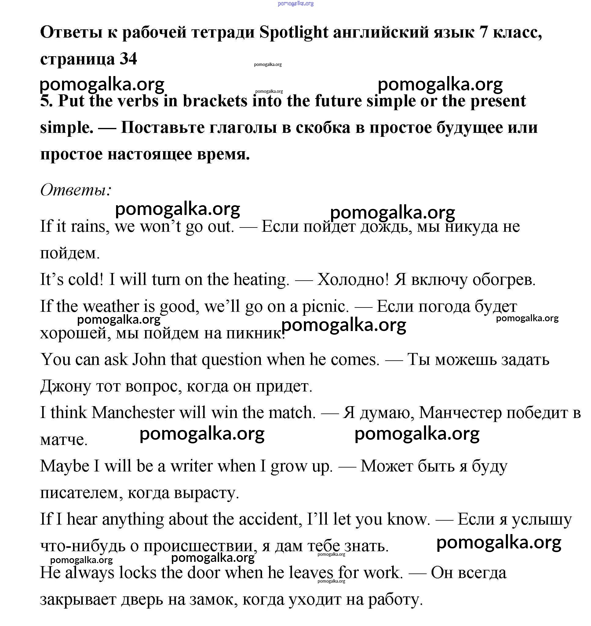 Готовые ответы - Английский язык 7 класс Ваулина Spotlight рабочая тетрадь - Grammar Practice module 5 5
