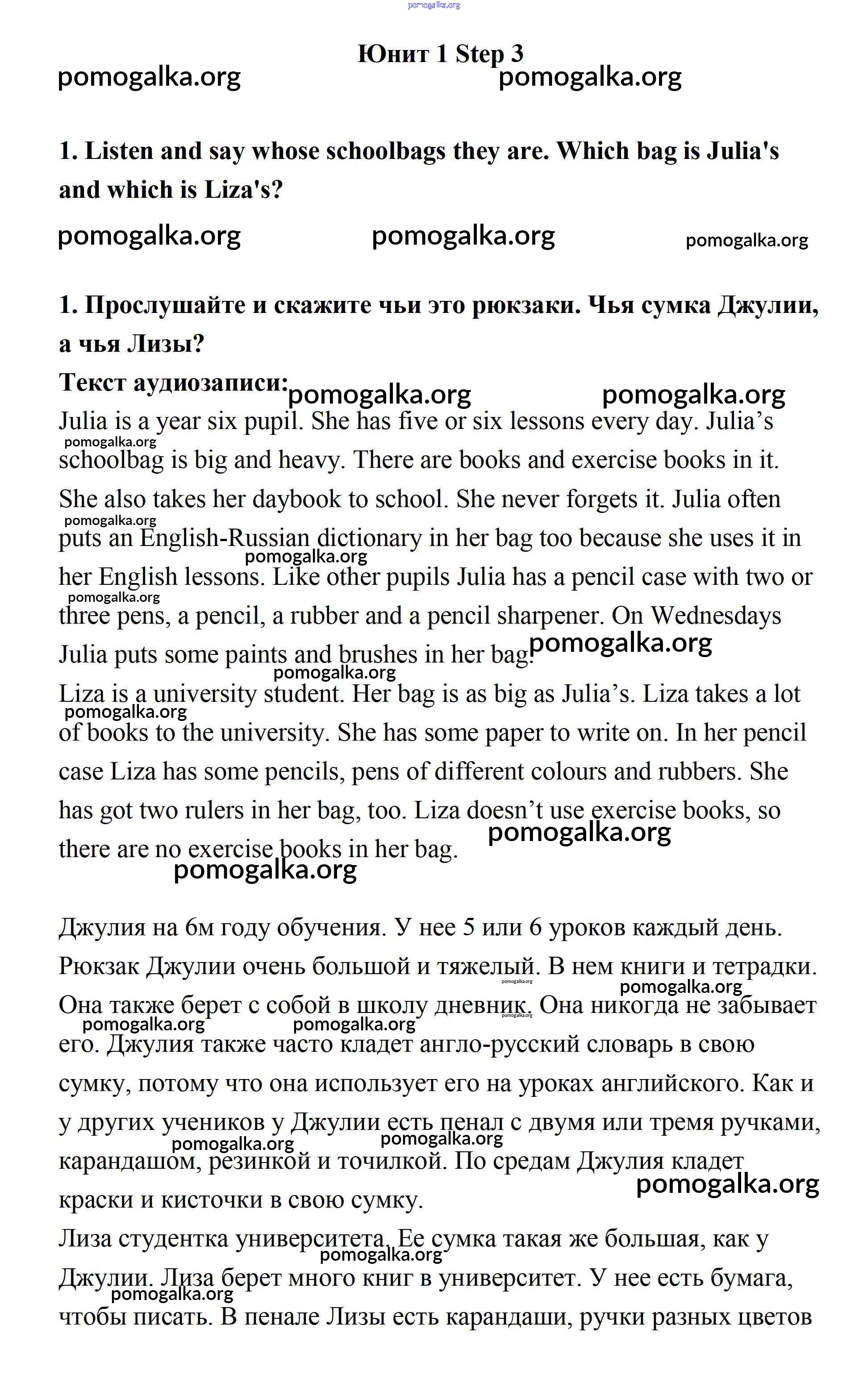 Готовые ответы - Английский язык 7 класс Афанасьева Rainbow - step 3 unit 1 1