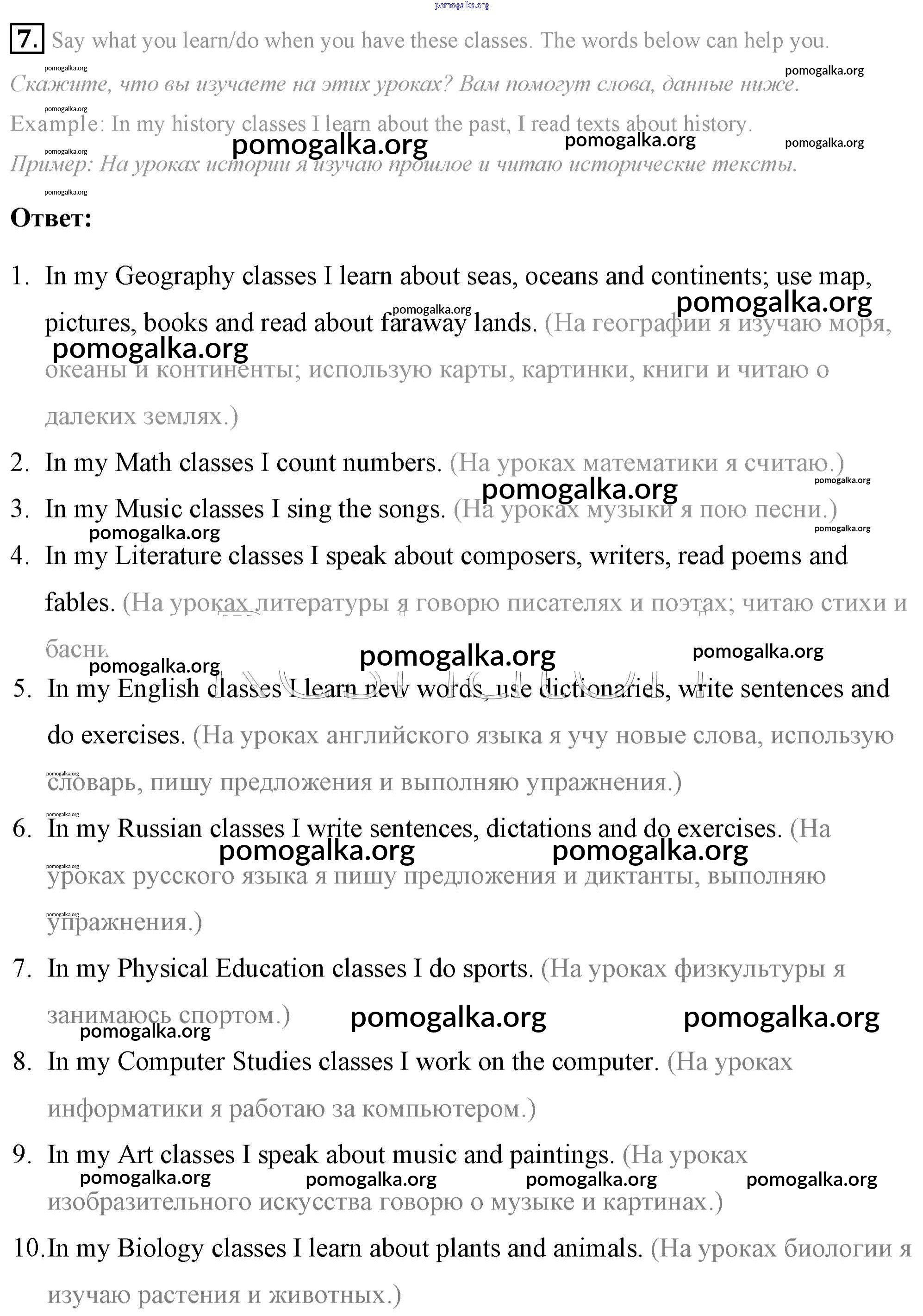 Готовые ответы - Английский язык 7 класс Афанасьева Rainbow - step 5 unit 1 7