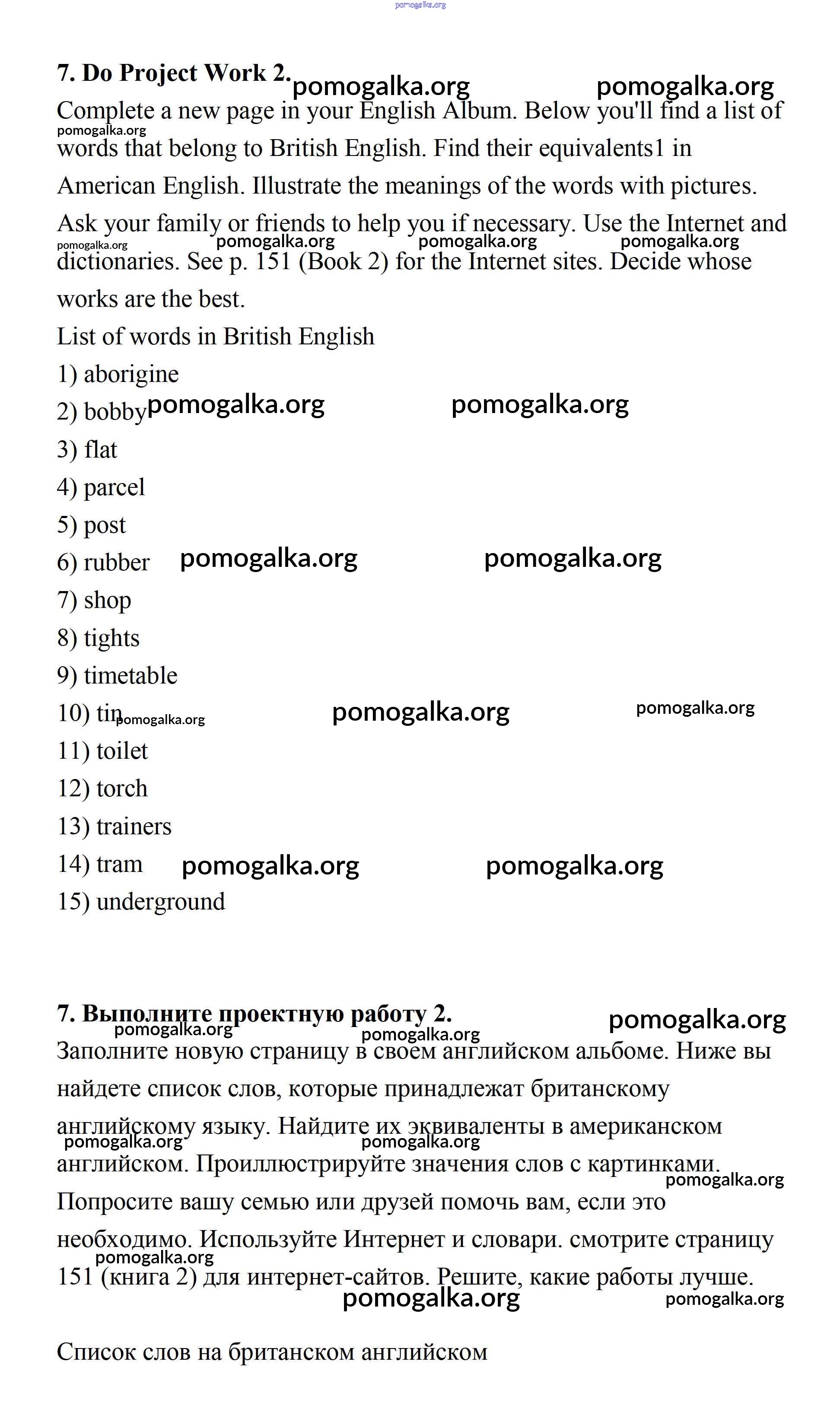 Готовые ответы - Английский язык 7 класс Афанасьева Rainbow - step 10 unit 2 7