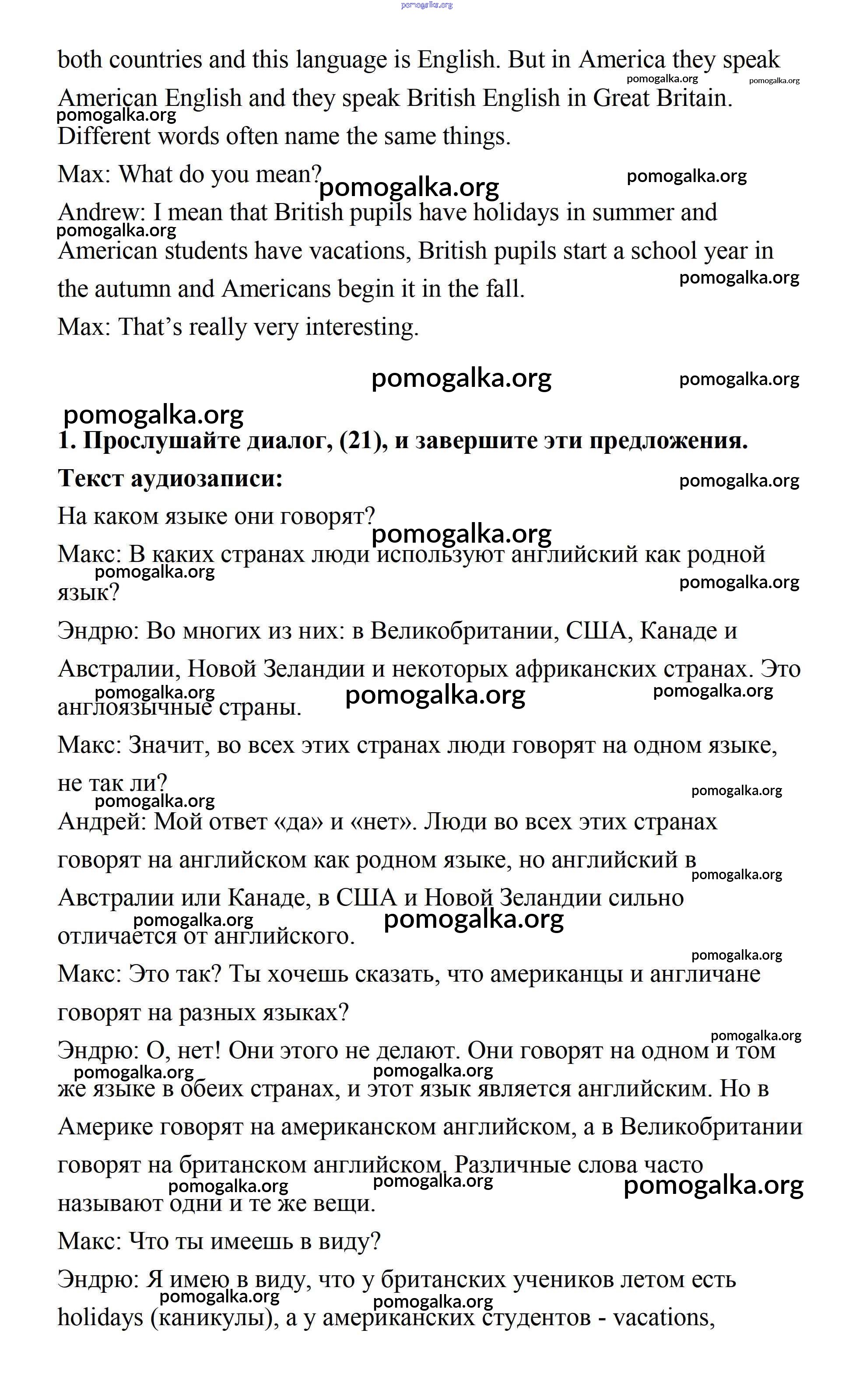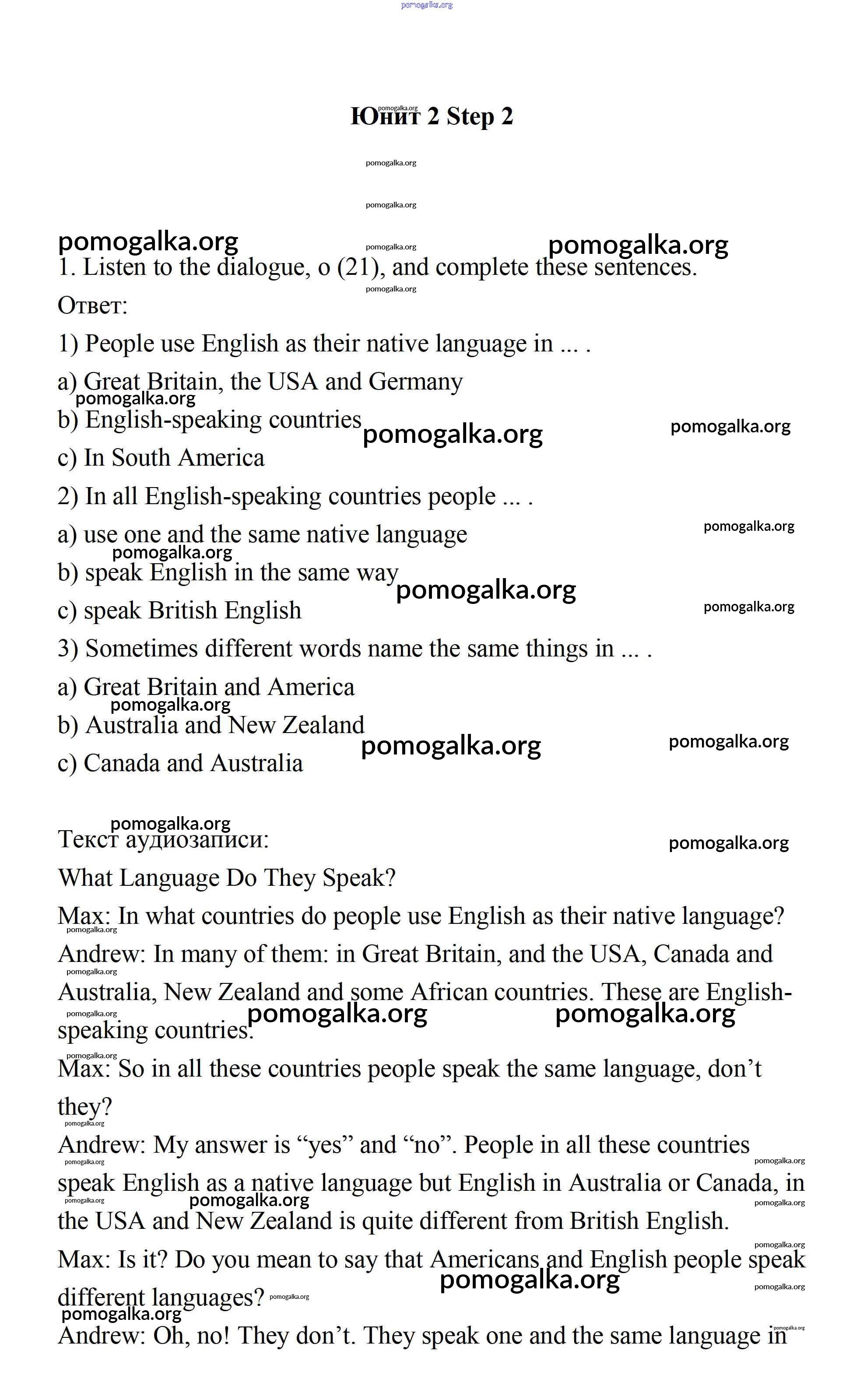 Готовые ответы - Английский язык 7 класс Афанасьева Rainbow - step 2 unit 2 1