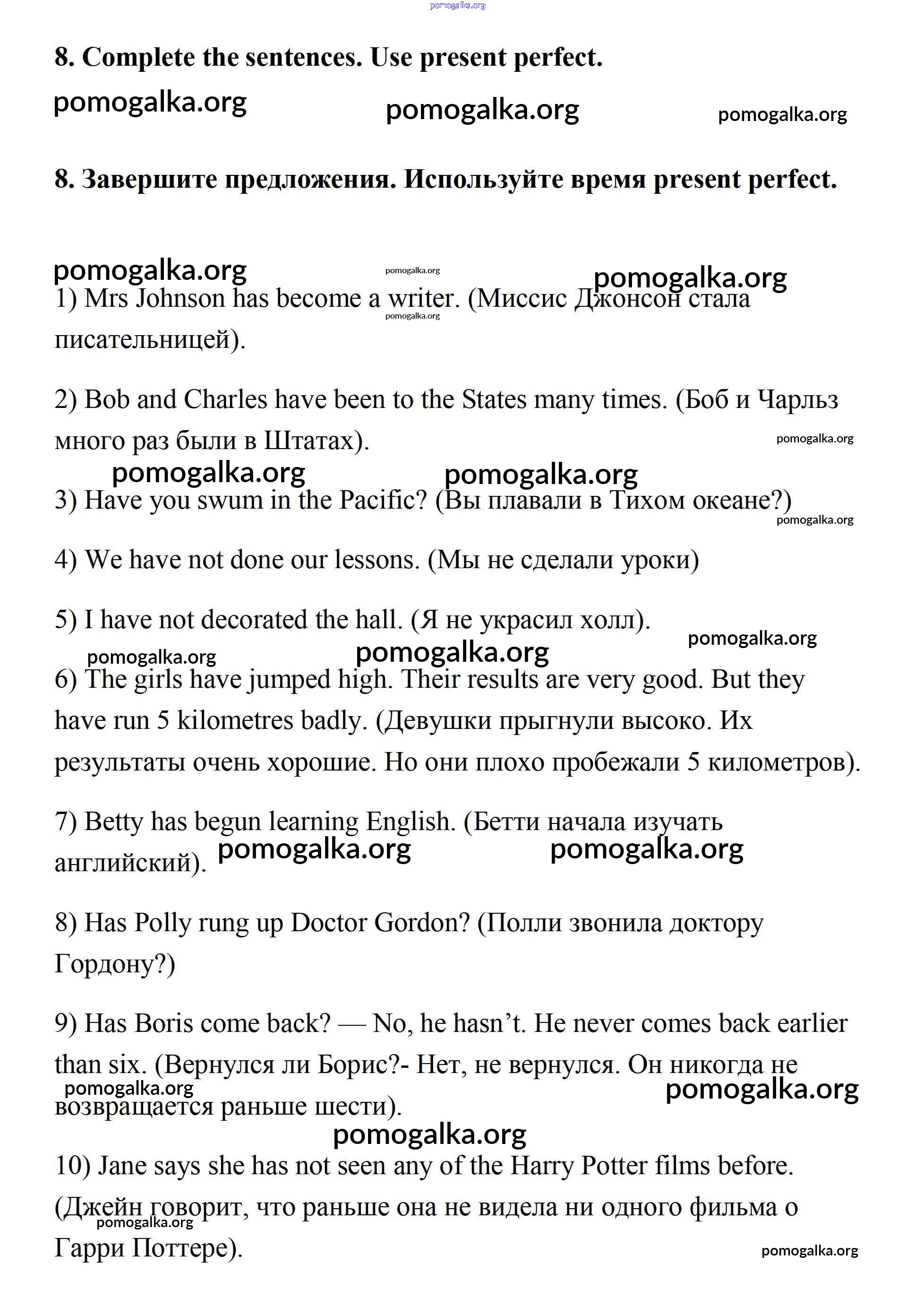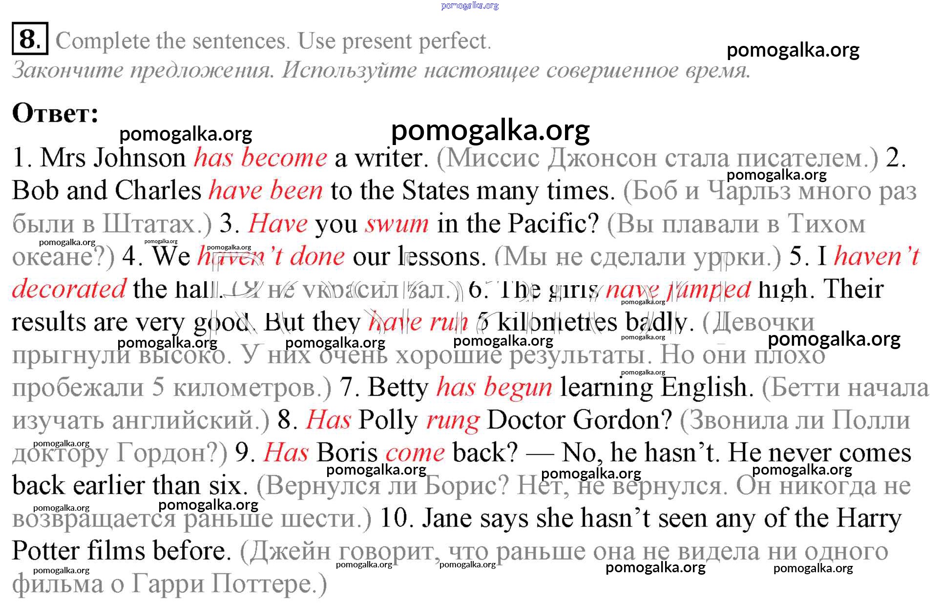 Готовые ответы - Английский язык 7 класс Афанасьева Rainbow - step 3 unit 2 8