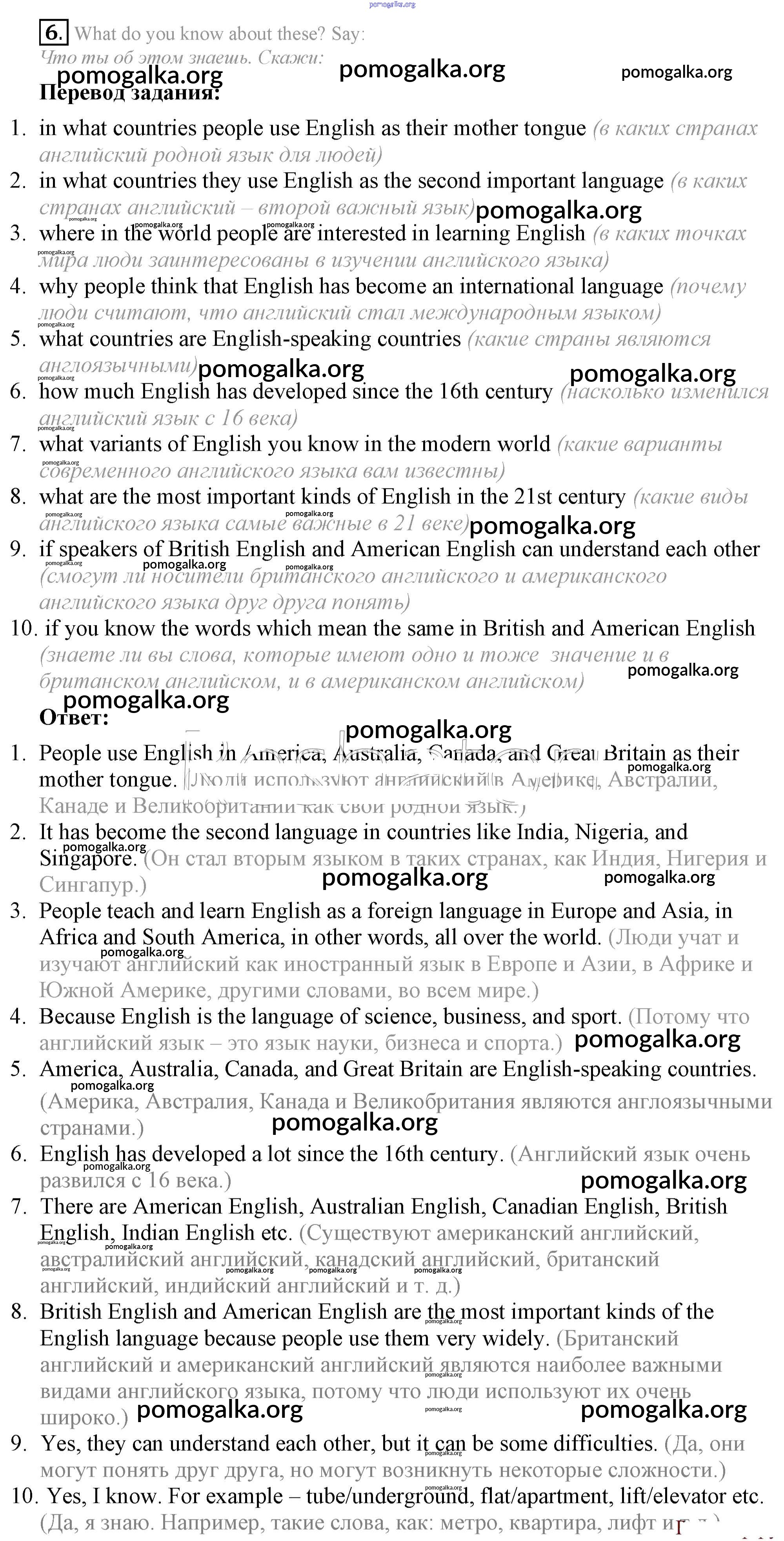 Готовые ответы - Английский язык 7 класс Афанасьева Rainbow - step 5 unit 2 6