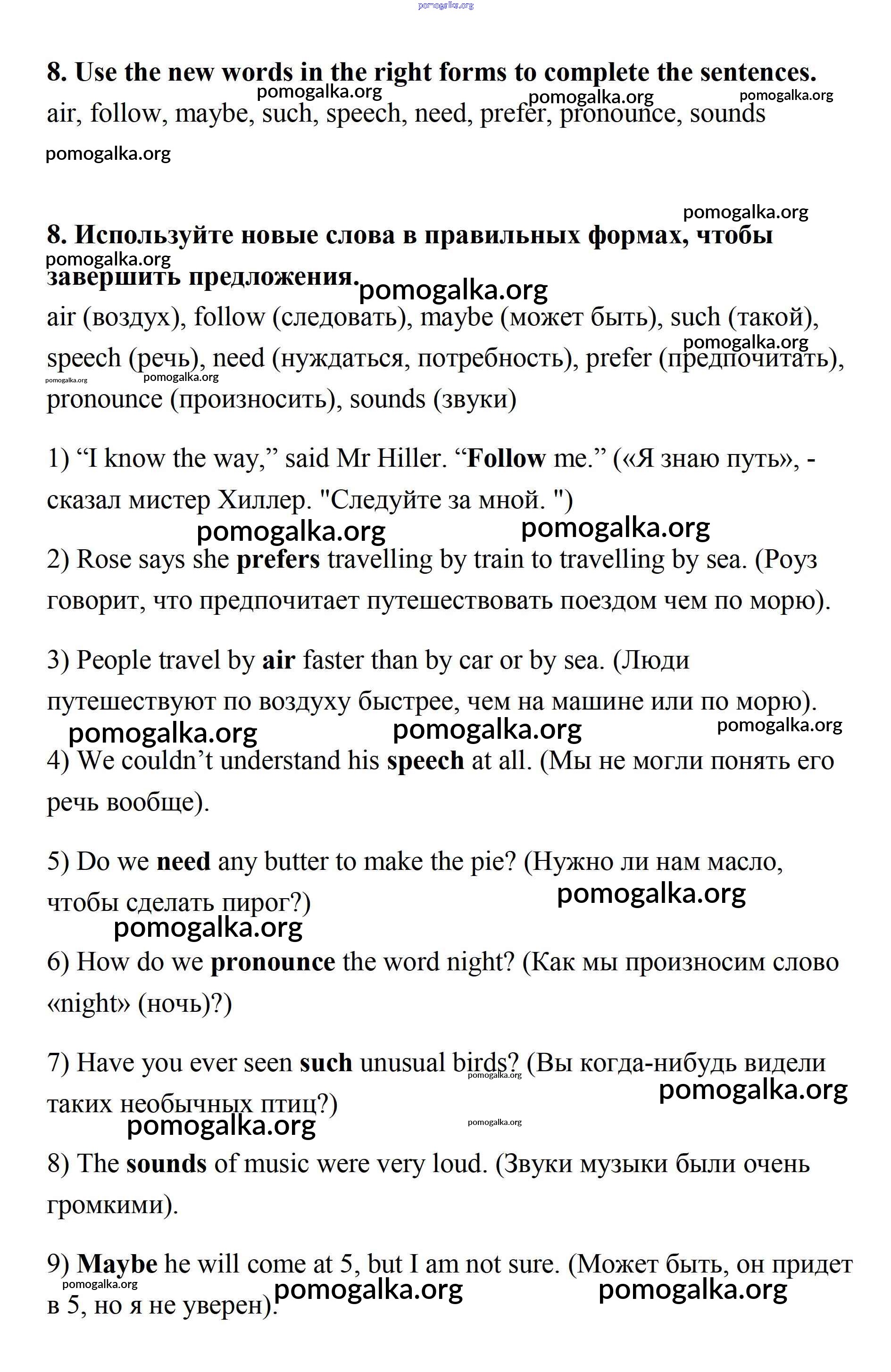 Готовые ответы - Английский язык 7 класс Афанасьева Rainbow - step 6 unit 2 8