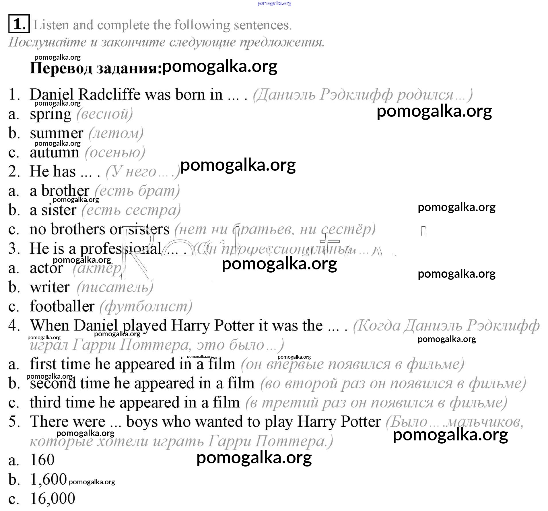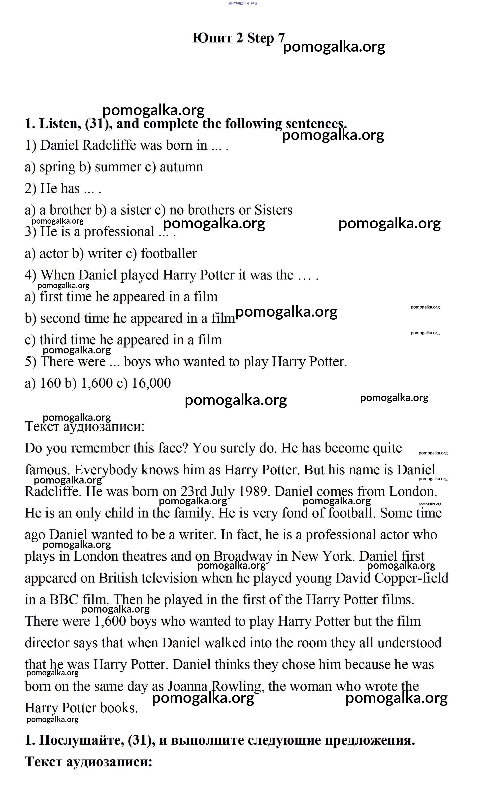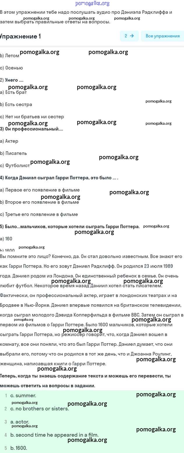 Готовые ответы - Английский язык 7 класс Афанасьева Rainbow - step 7 unit 2 1