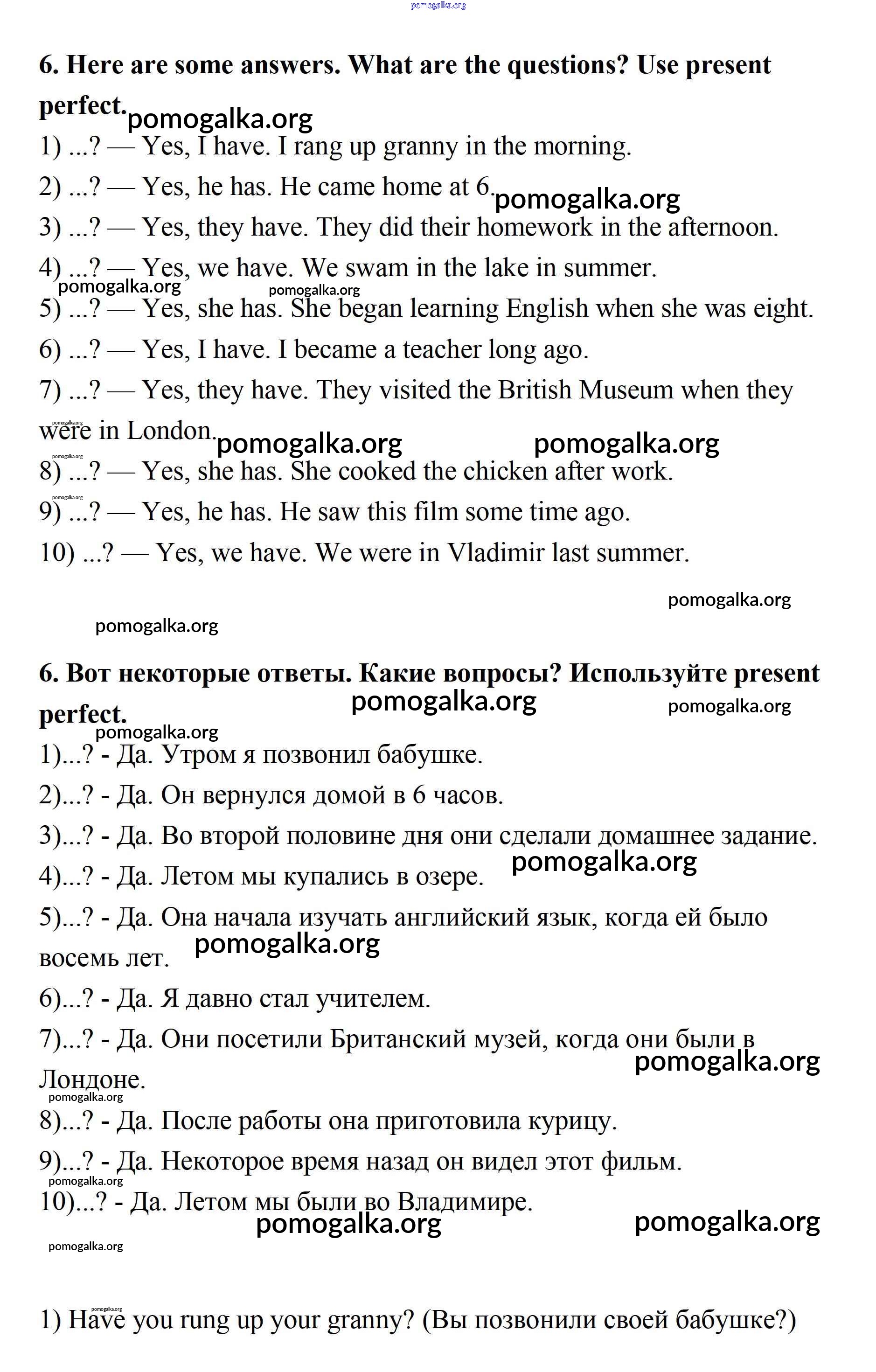 Готовые ответы - Английский язык 7 класс Афанасьева Rainbow - step 7 unit 2 6