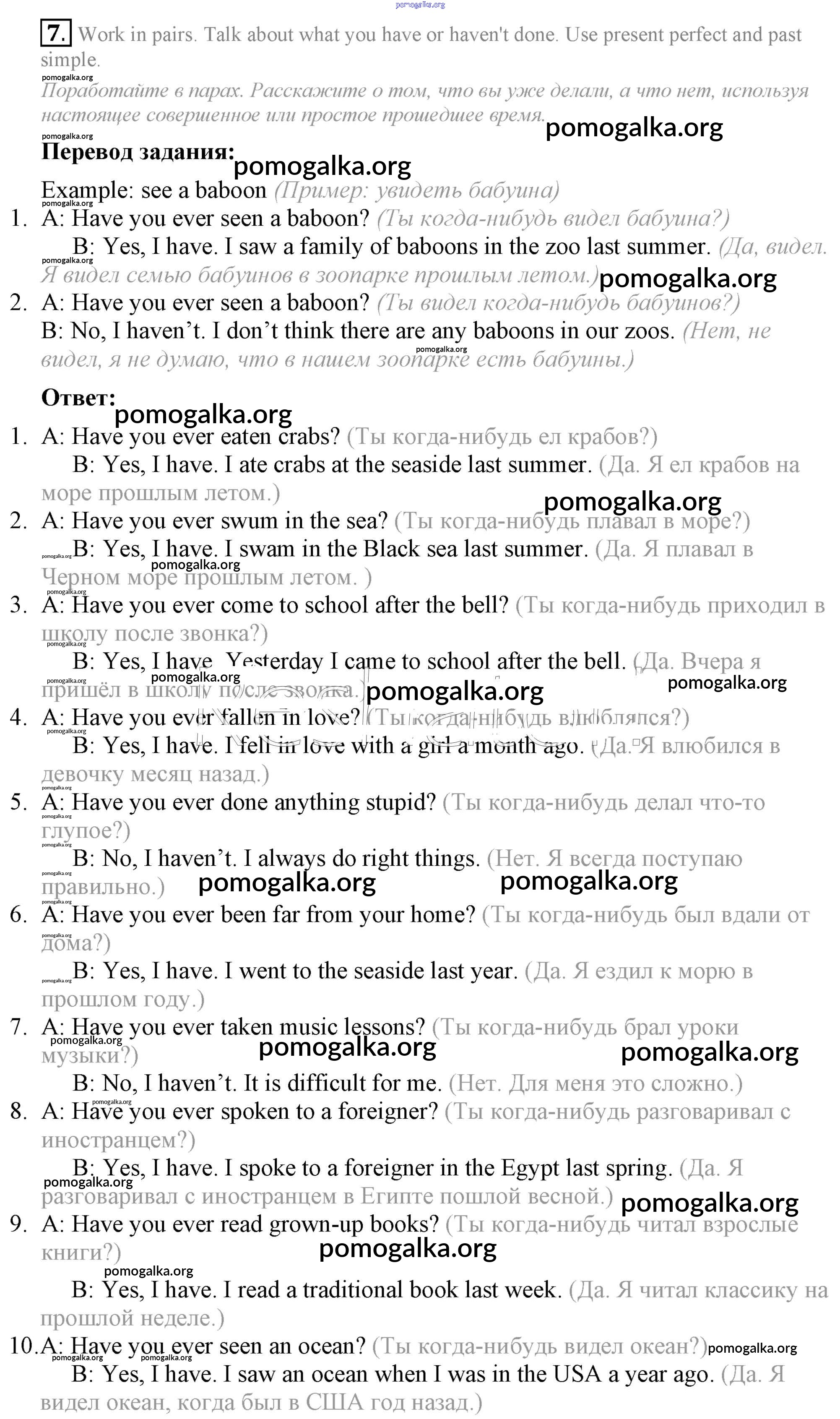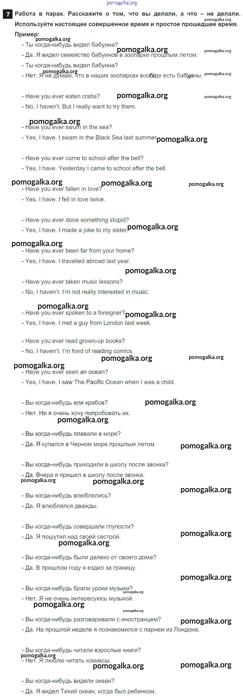 Готовые ответы - Английский язык 7 класс Афанасьева Rainbow - step 7 unit 2 7
