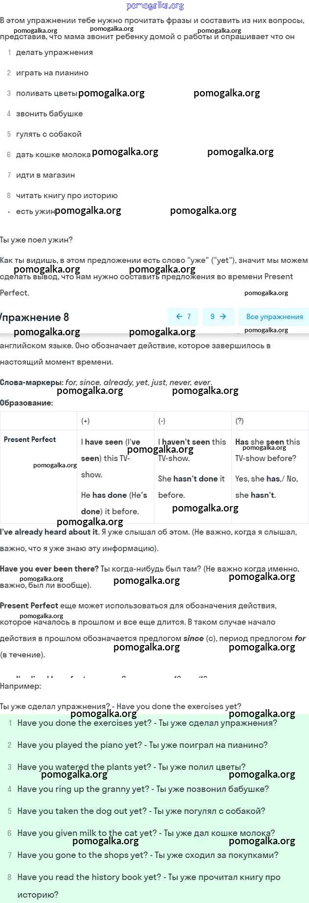 Готовые ответы - Английский язык 7 класс Афанасьева Rainbow - step 7 unit 2 8