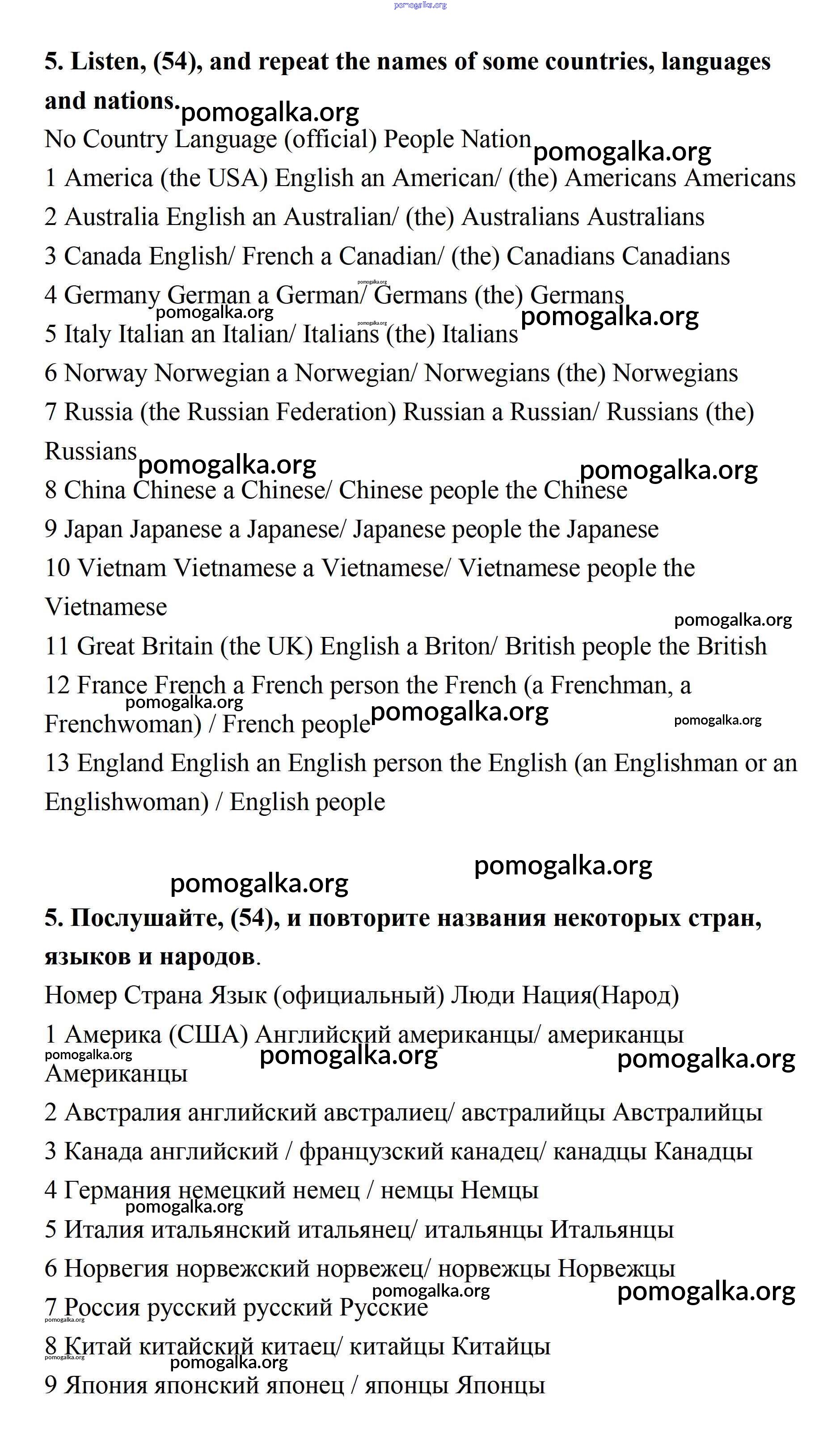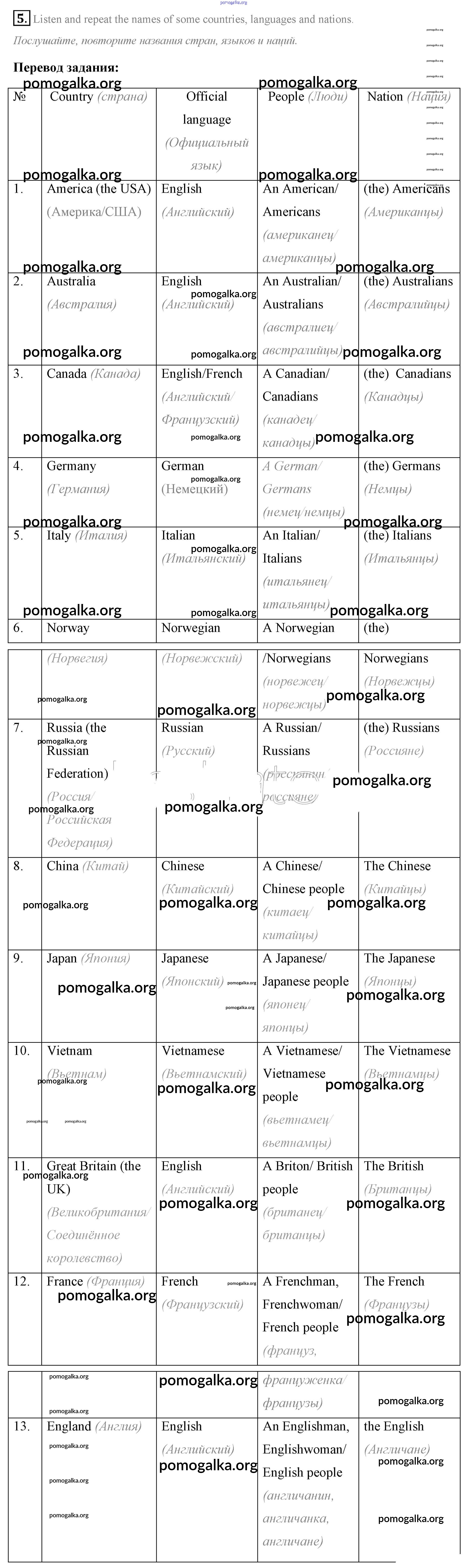 Готовые ответы - Английский язык 7 класс Афанасьева Rainbow - step 7 unit 3 5