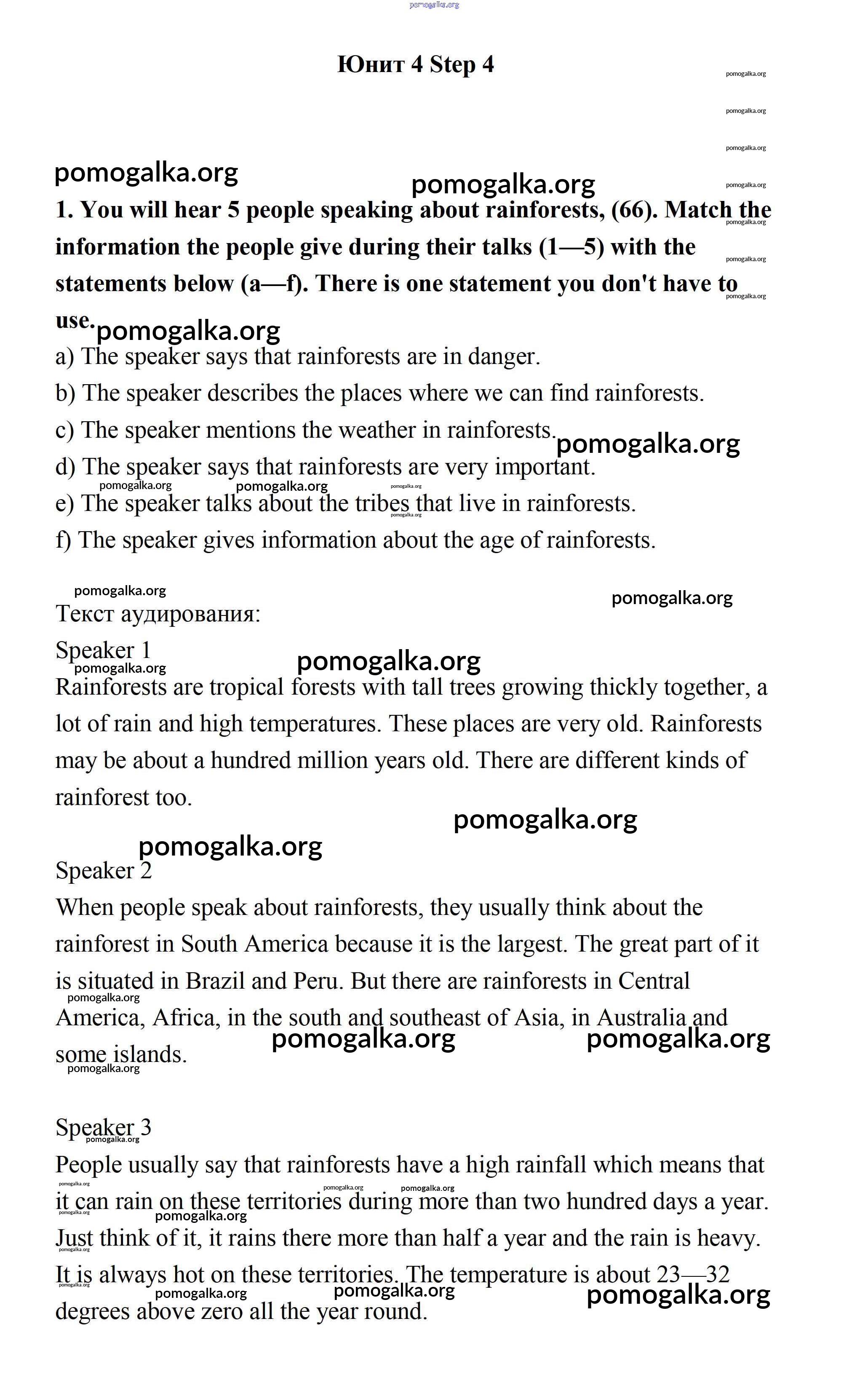 Готовые ответы - Английский язык 7 класс Афанасьева Rainbow - step 4 unit 4 1