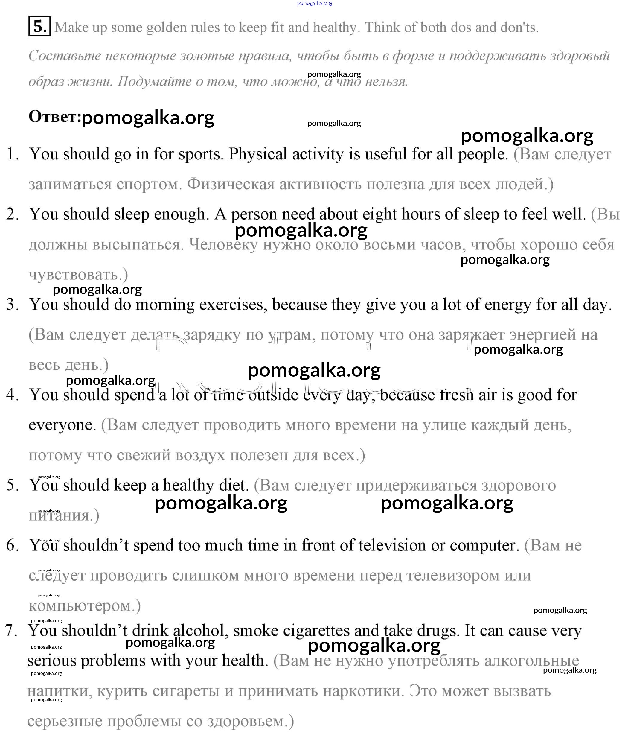 Готовые ответы - Английский язык 7 класс Афанасьева Rainbow - step 10 unit 6 5