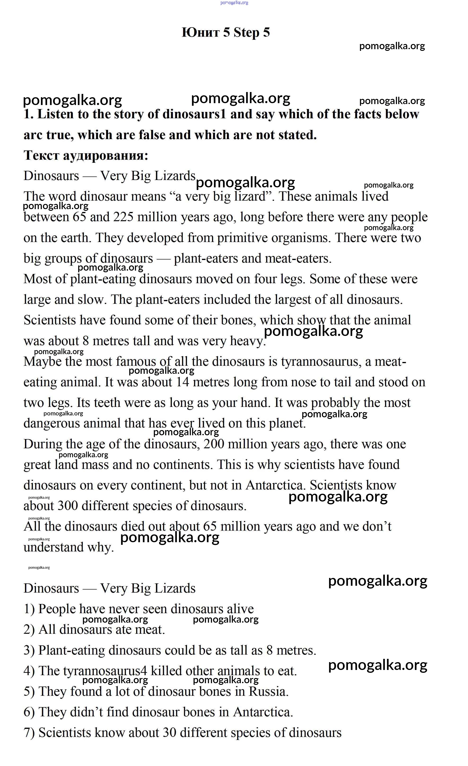 Готовые ответы - Английский язык 7 класс Афанасьева Rainbow - step 5 unit 5 1