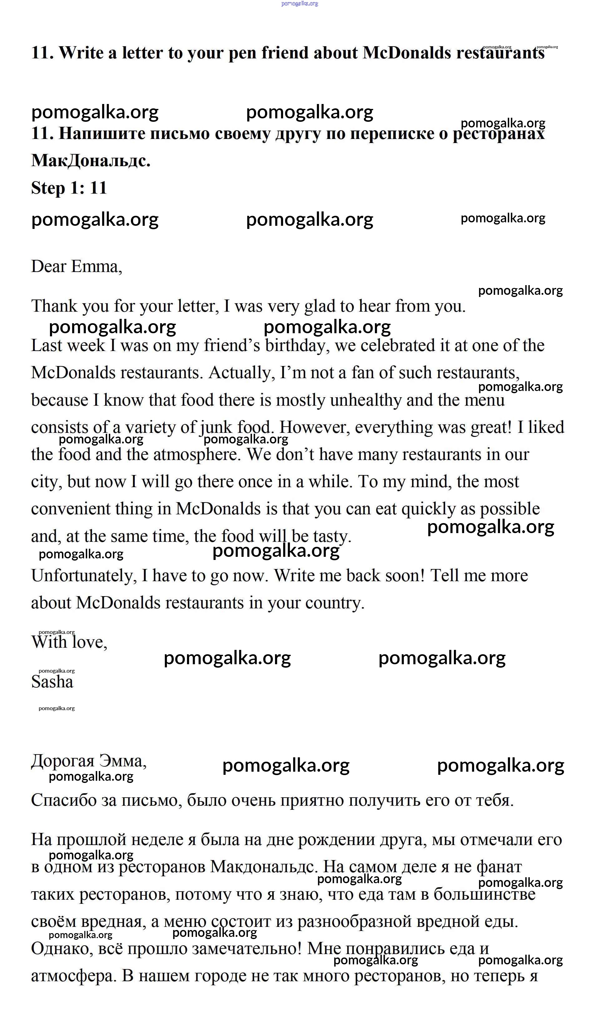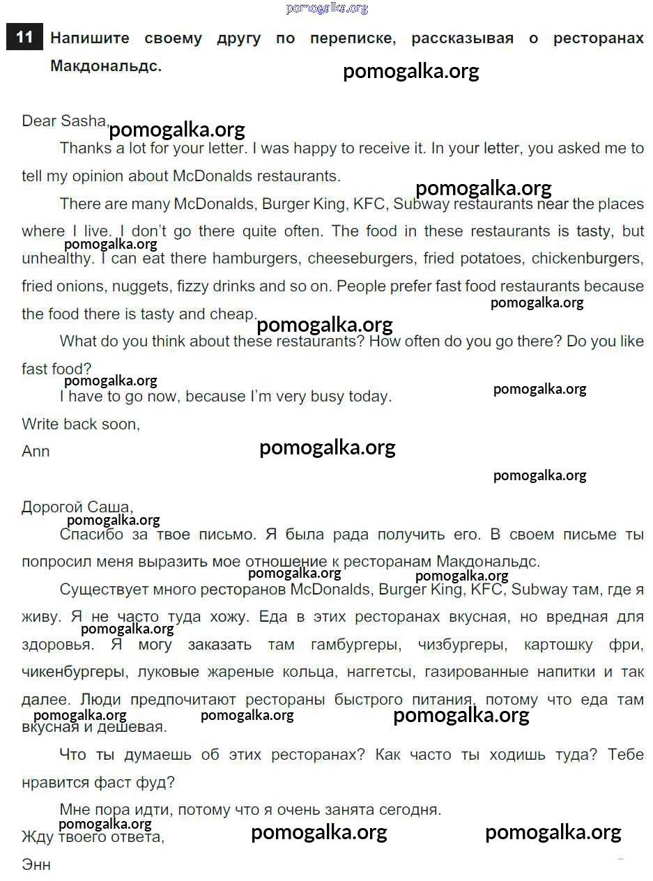 Готовые ответы - Английский язык 7 класс Афанасьева Rainbow - step 1 unit 6 11