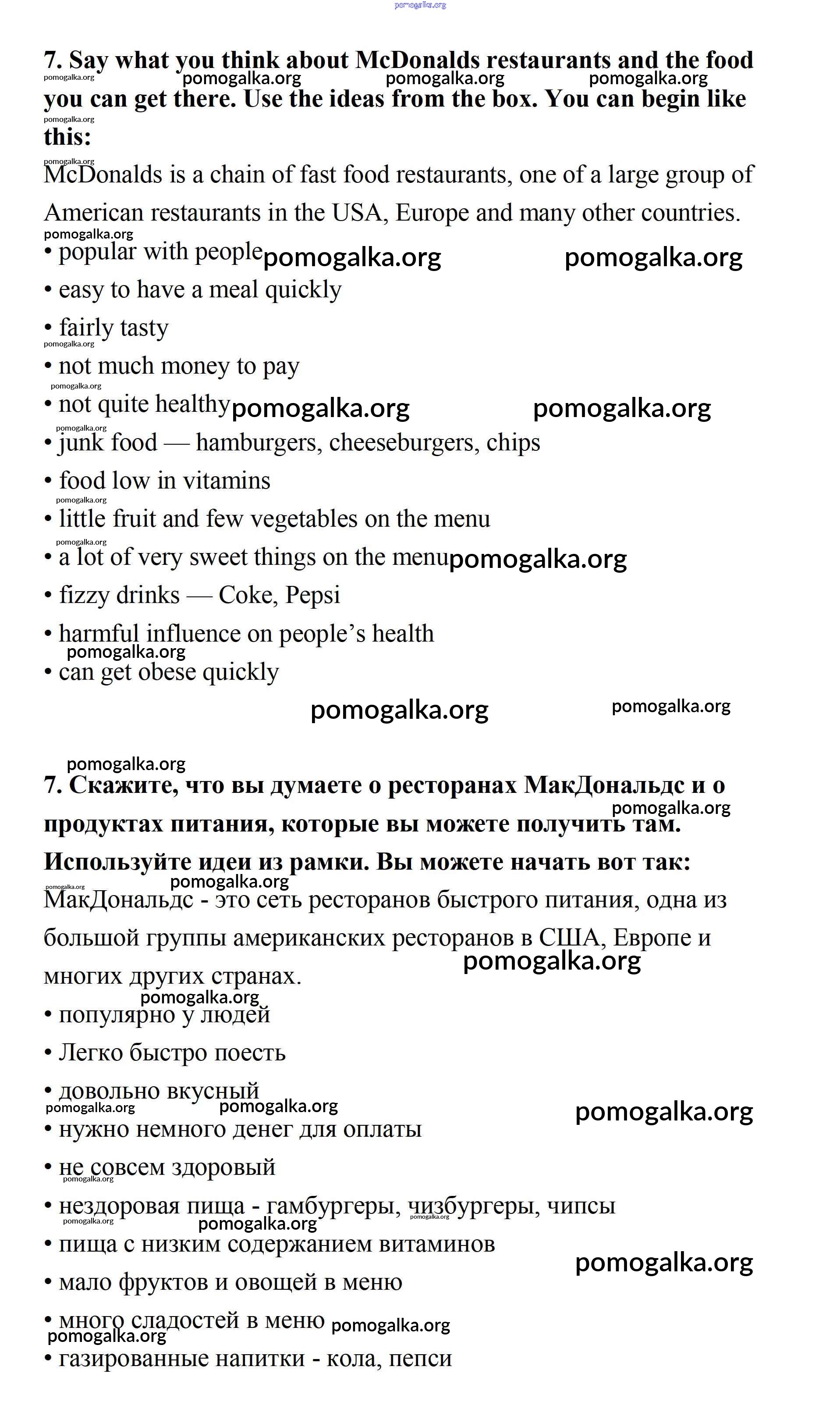 Готовые ответы - Английский язык 7 класс Афанасьева Rainbow - step 1 unit 6 7