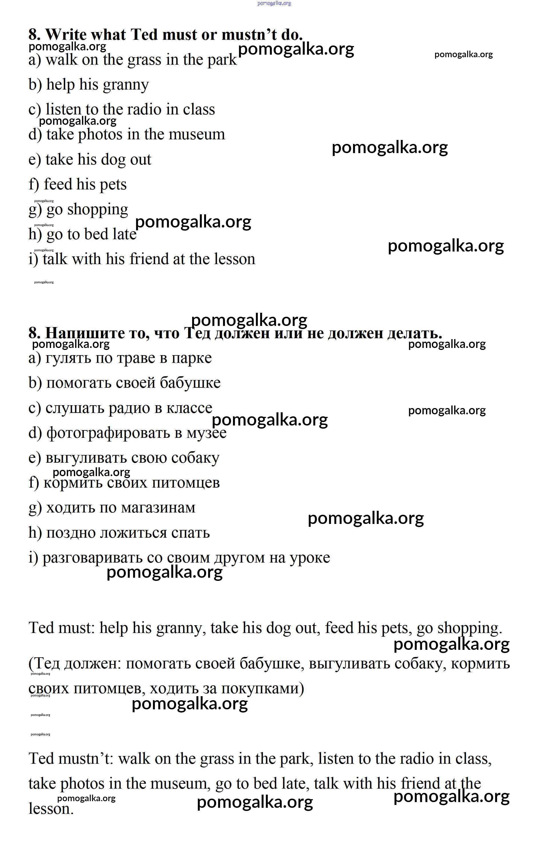 Готовые ответы - Английский язык 7 класс Афанасьева Михеева (Новый курс) - секция 2 unit 6 8