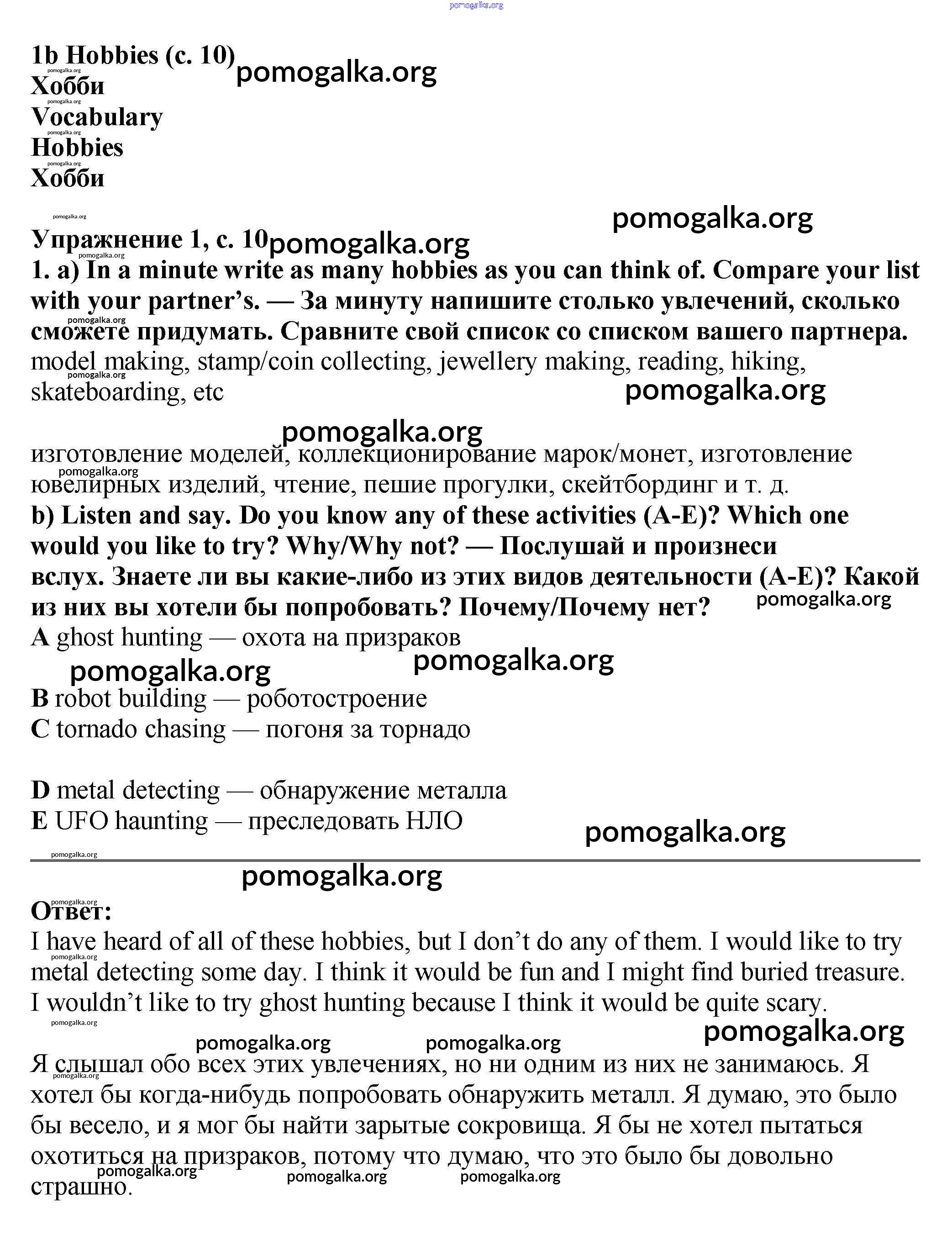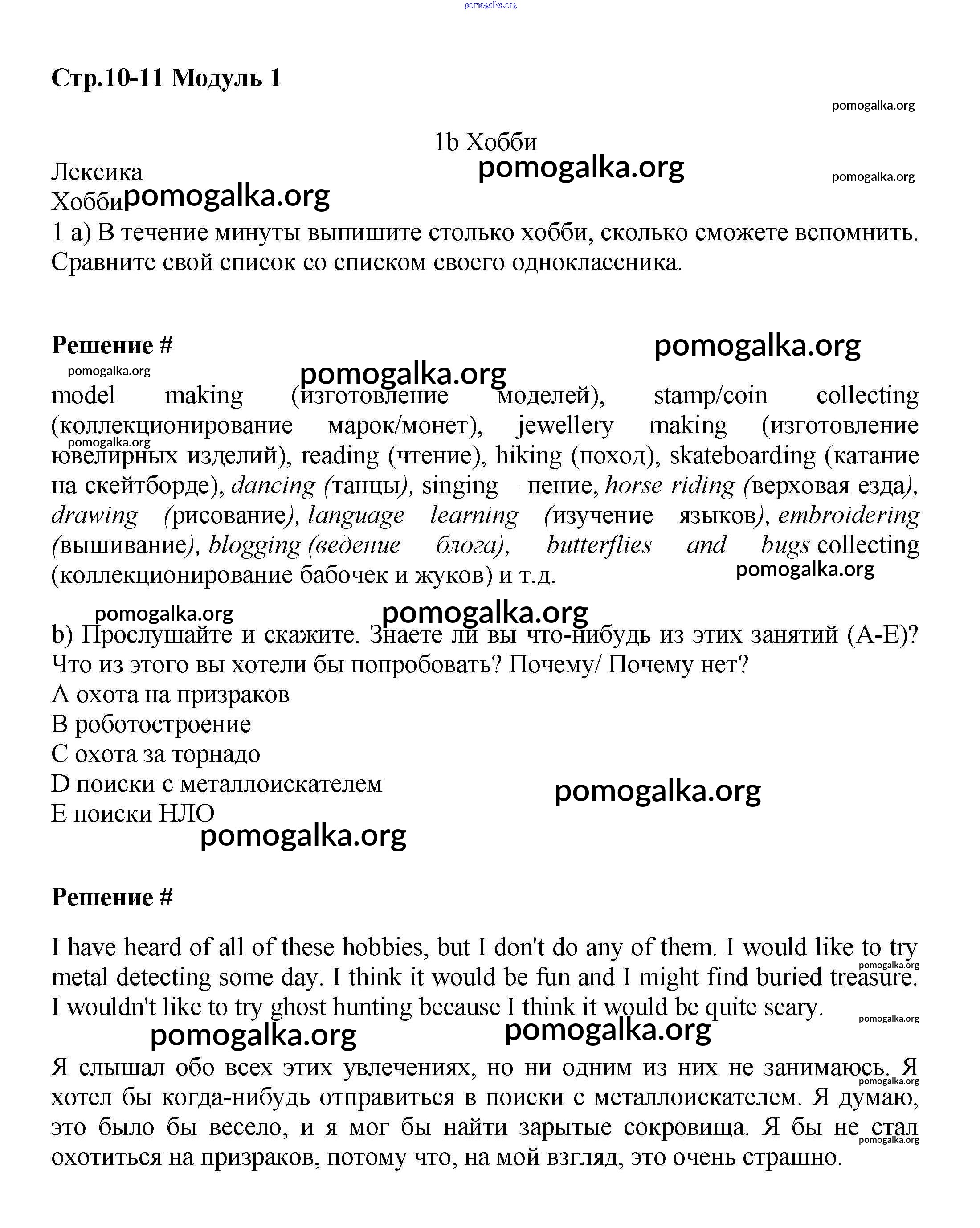 Готовые ответы - Английский язык 7 класс Starlight Баранова К.М. - module 1 10-11