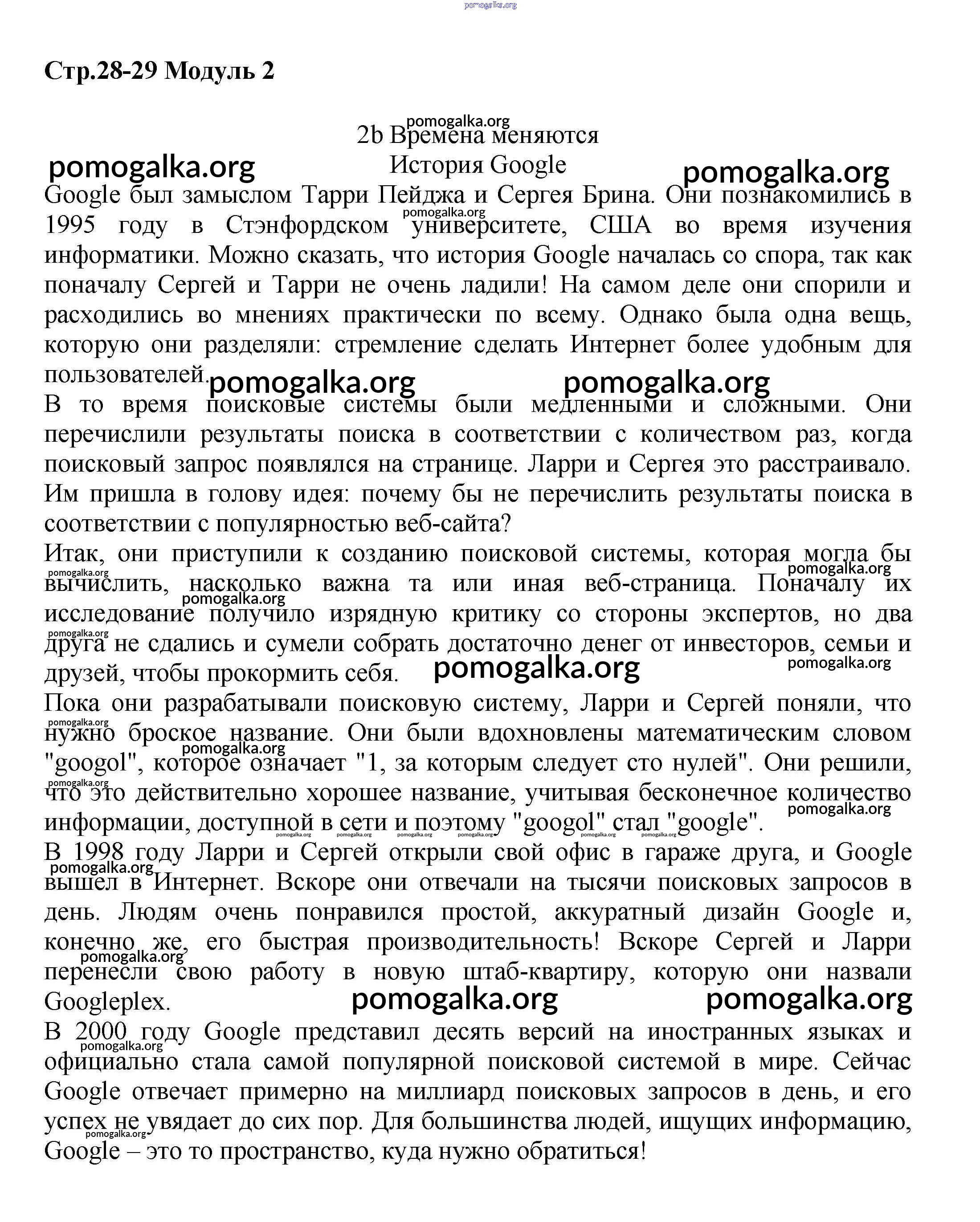 Готовые ответы - Английский язык 7 класс Starlight Баранова К.М. - module 2 28-29