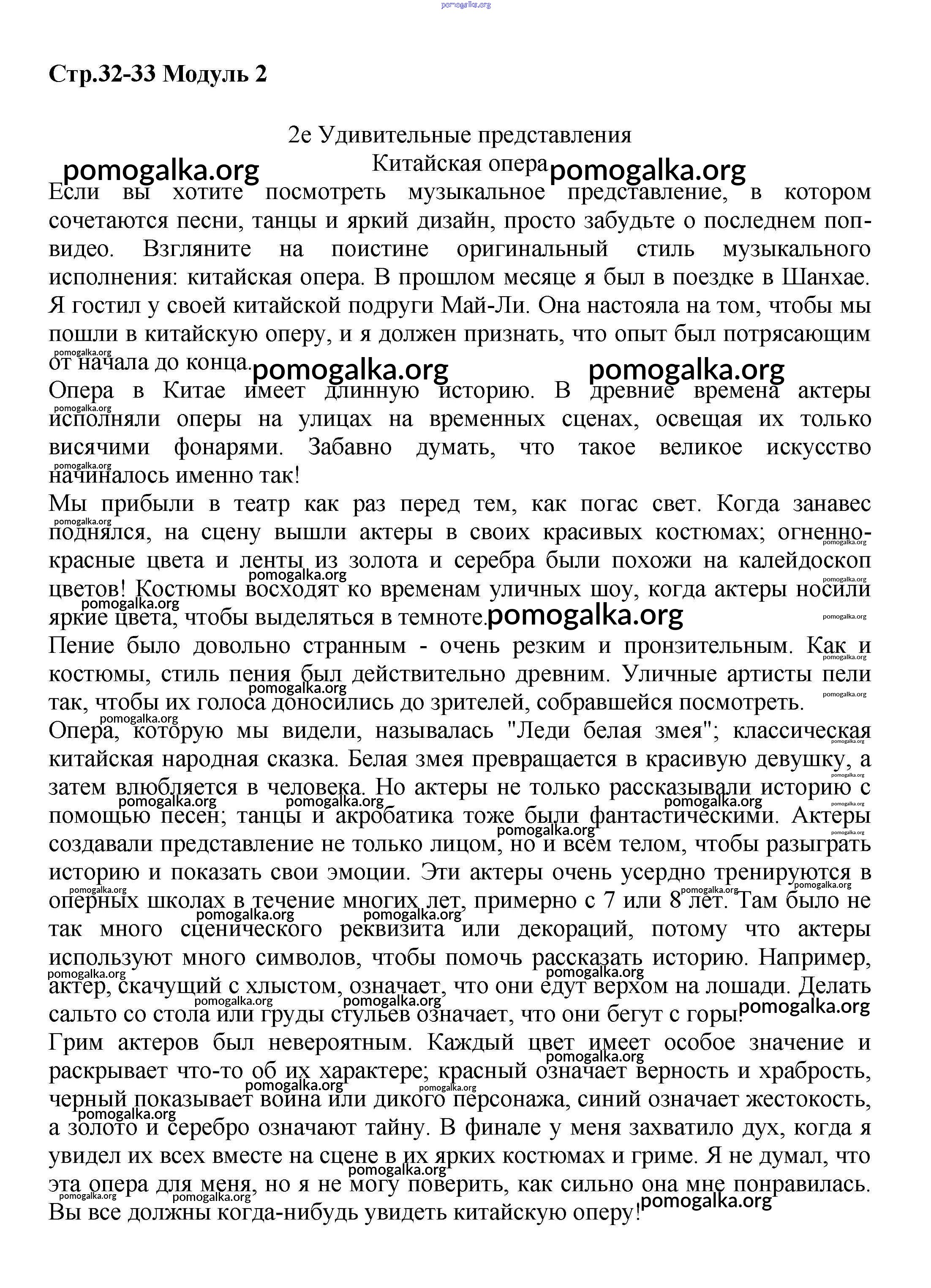 Готовые ответы - Английский язык 7 класс Starlight Баранова К.М. - module 2 32-33