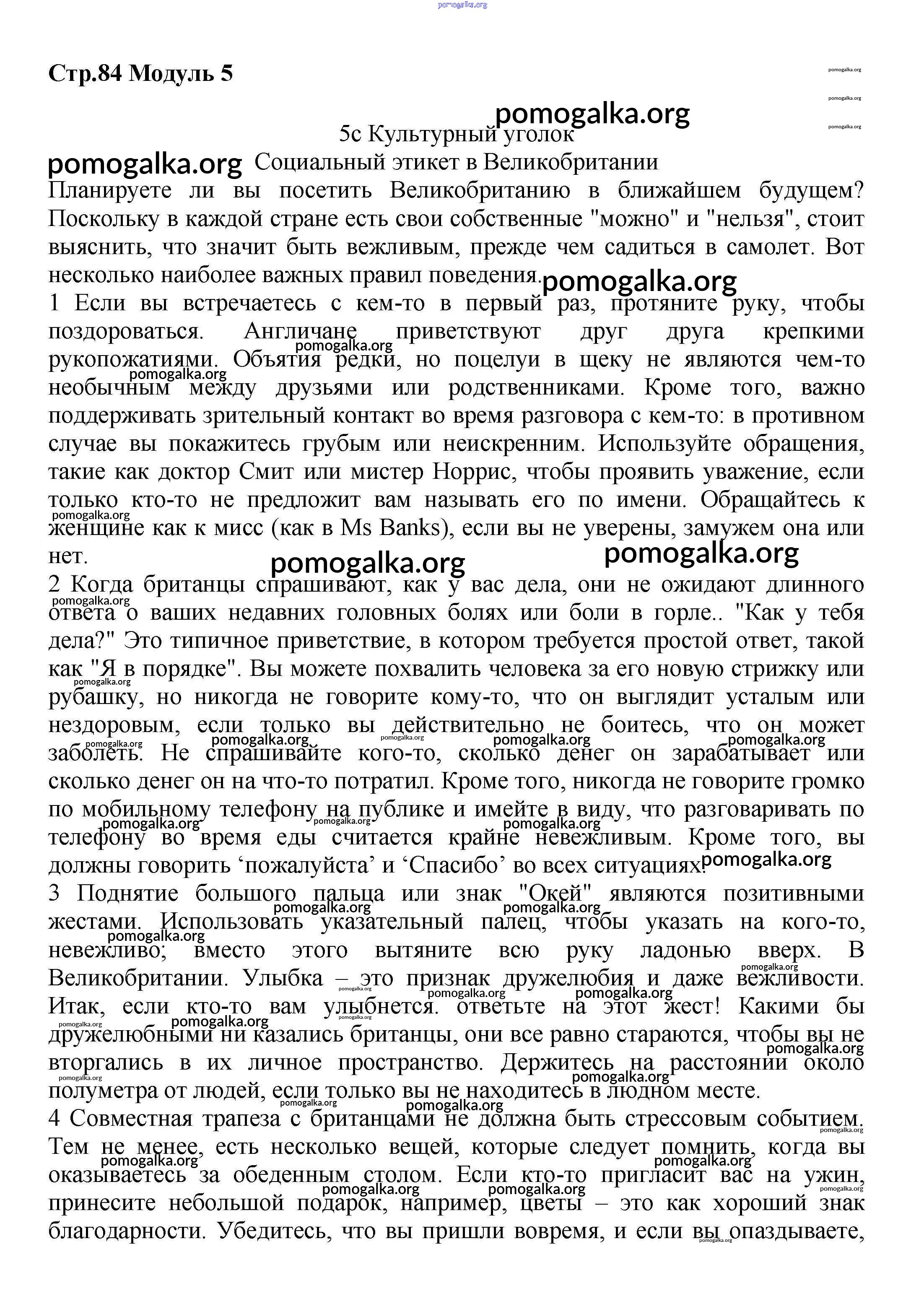Готовые ответы - Английский язык 7 класс Starlight Баранова К.М. - module 5 84