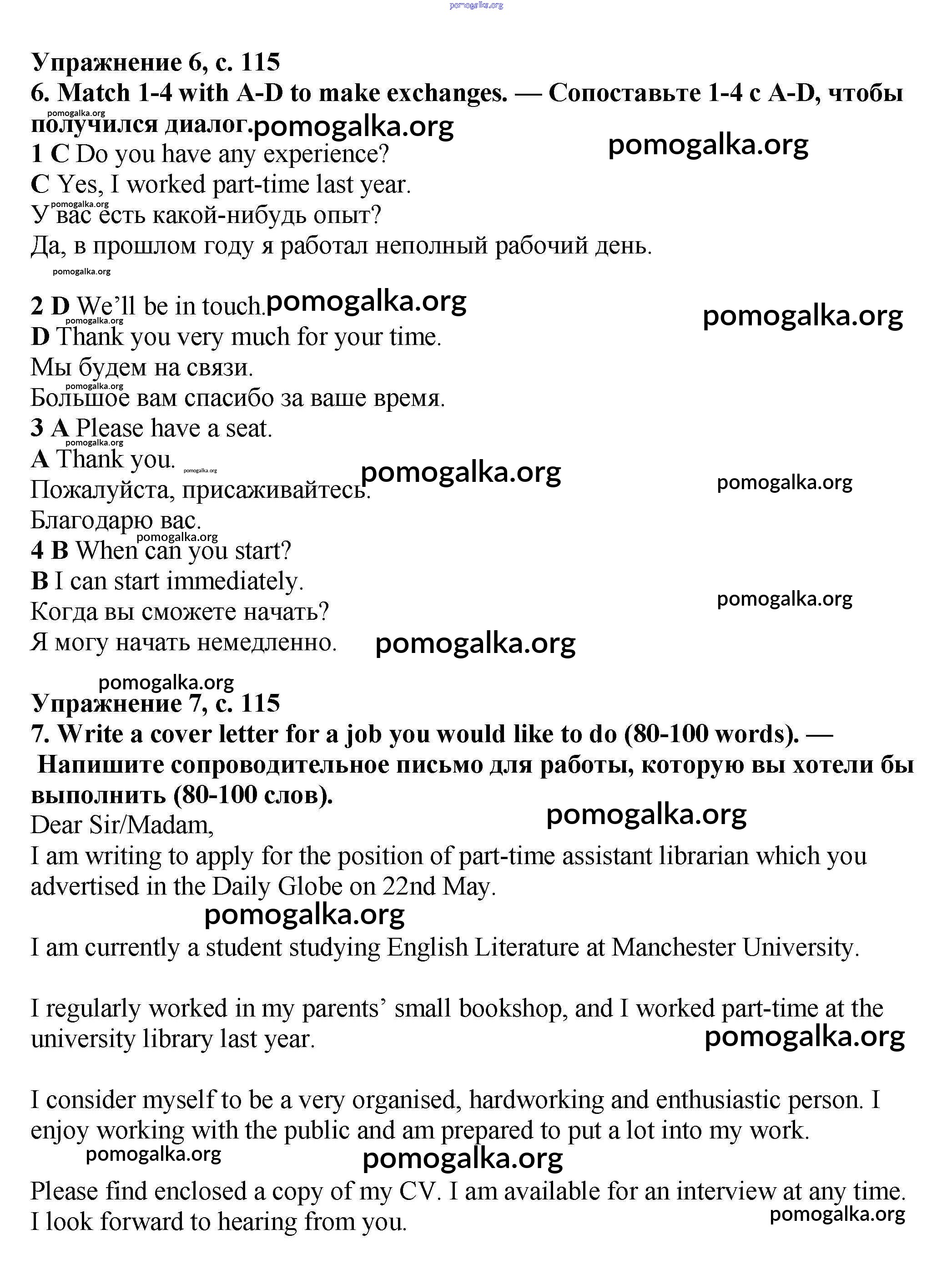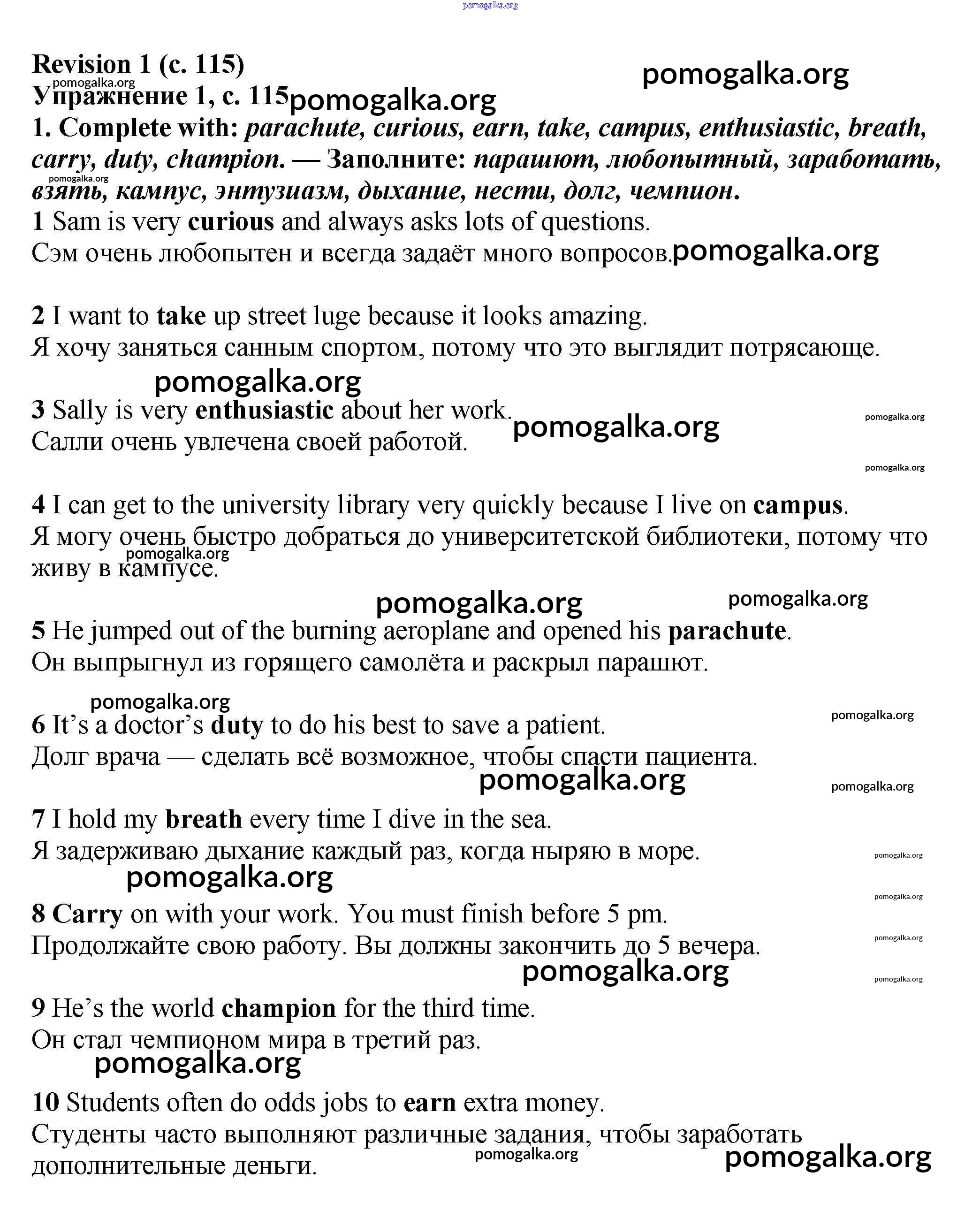 Готовые ответы - Английский язык 7 класс Starlight Баранова К.М. - revision 115