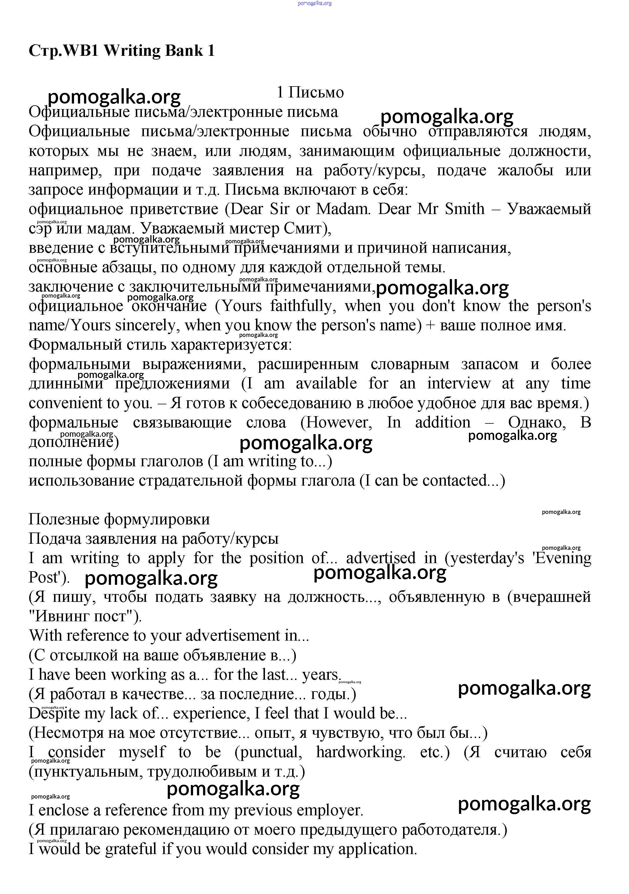 Готовые ответы - Английский язык 7 класс Starlight Баранова К.М. - writing bank WB1