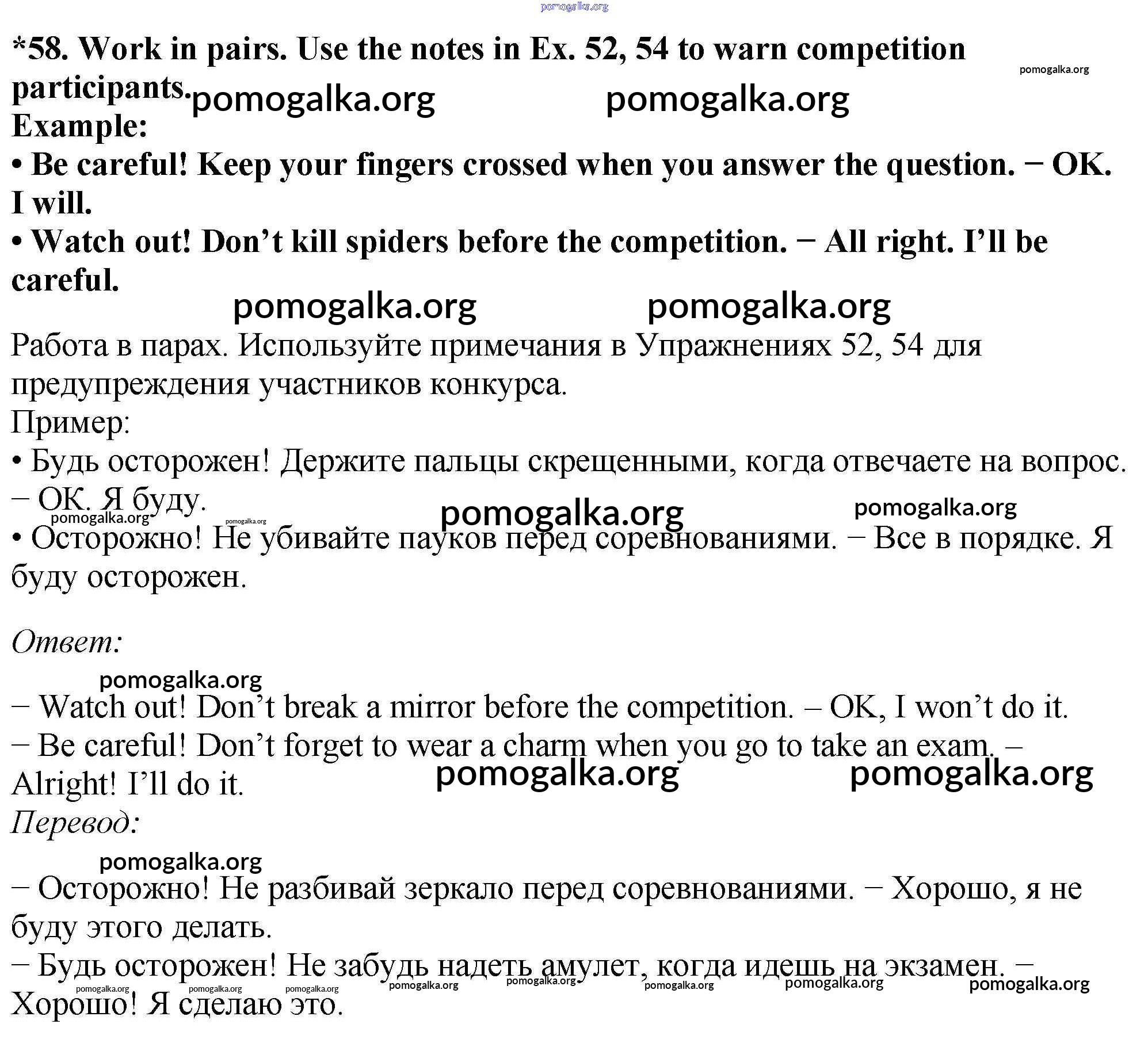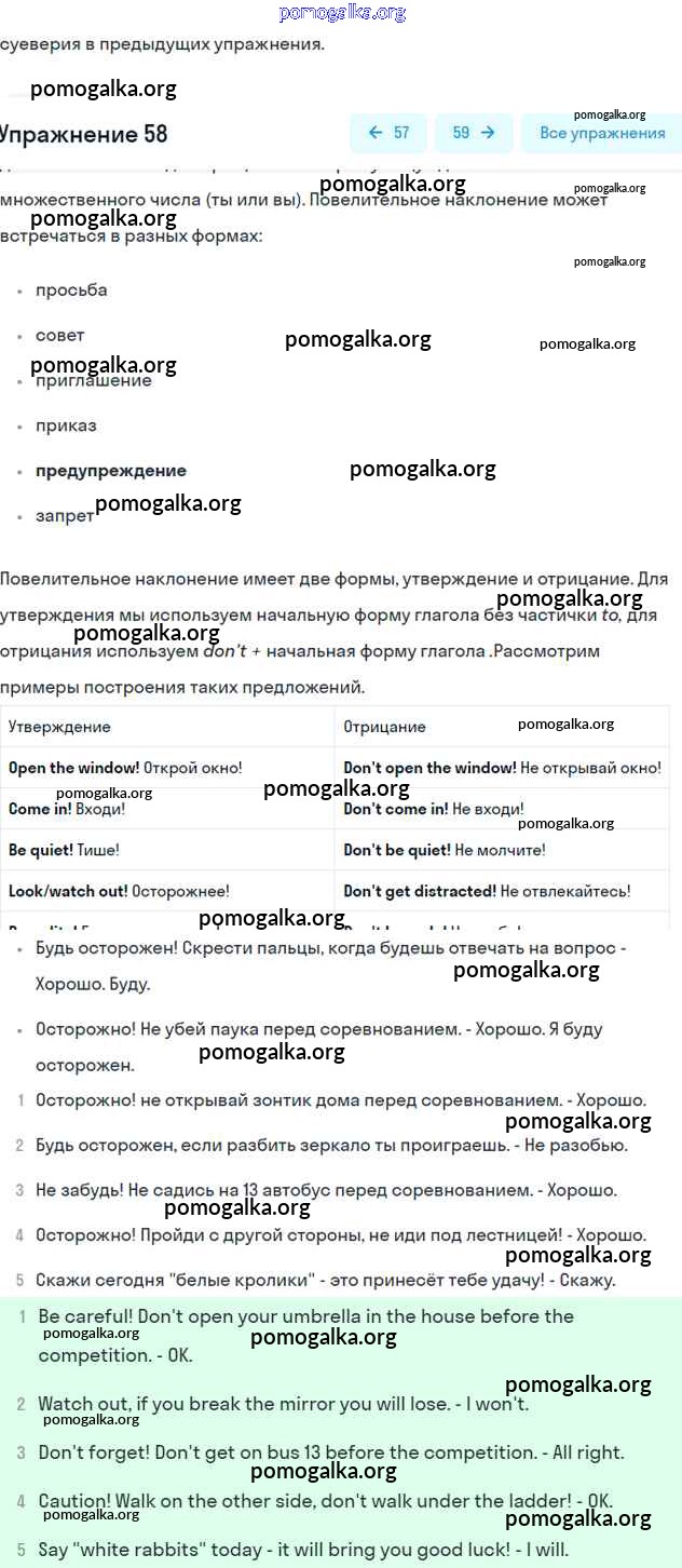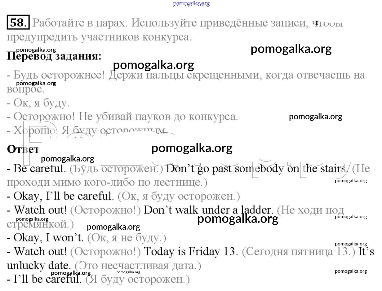 Готовые ответы - Английский язык 7 класс Enjoy English Биболетова М.З. - exercise unit 1 58
