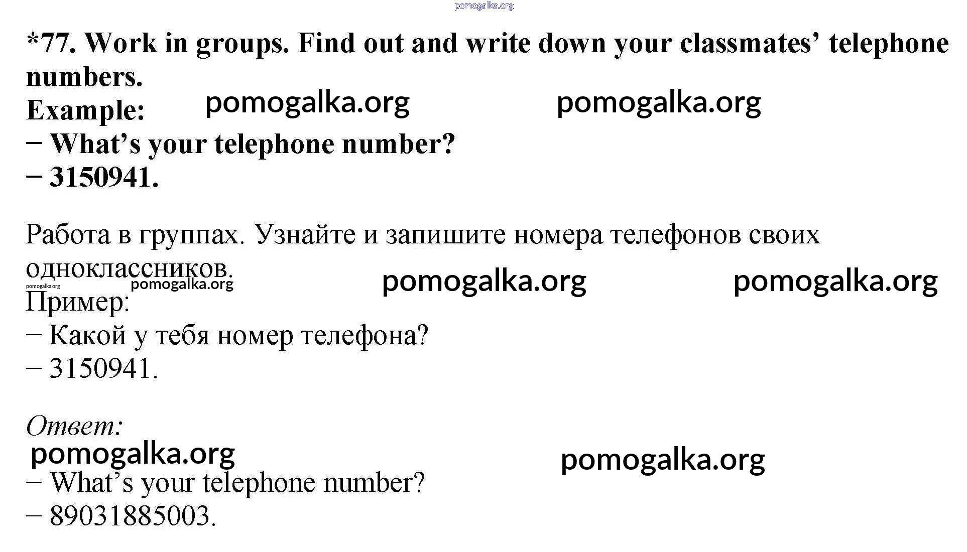 Готовые ответы - Английский язык 7 класс Enjoy English Биболетова М.З. - exercise unit 1 77