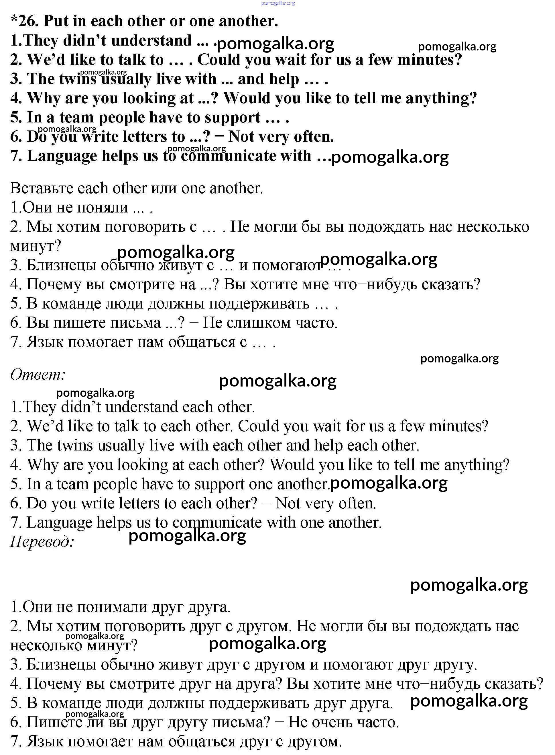 Готовые ответы - Английский язык 7 класс Enjoy English Биболетова М.З. - homework unit 1 26