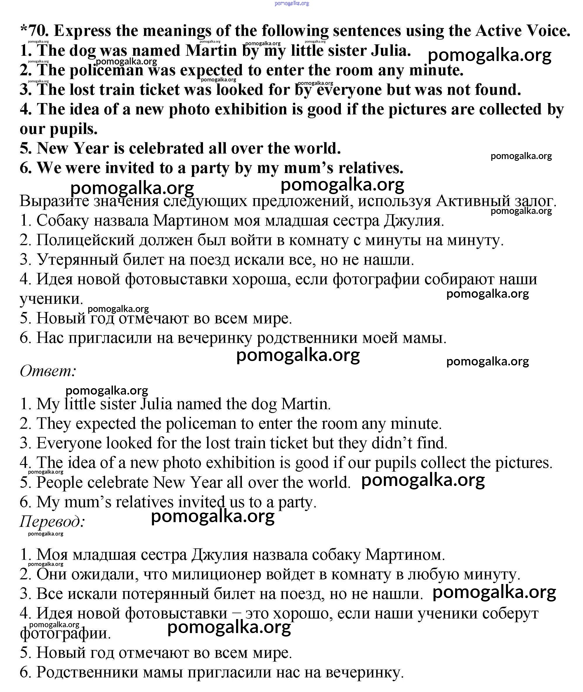 Готовые ответы - Английский язык 7 класс Enjoy English Биболетова М.З. - exercise unit 2 70