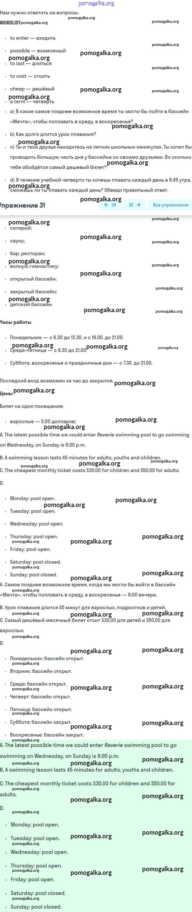 Готовые ответы - Английский язык 7 класс Enjoy English Биболетова М.З. - exercise unit 4 31