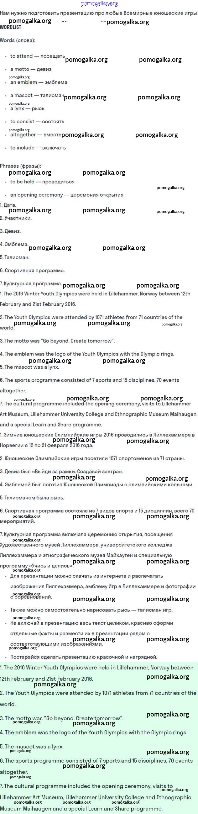 Структурированное пособие на каждый урок