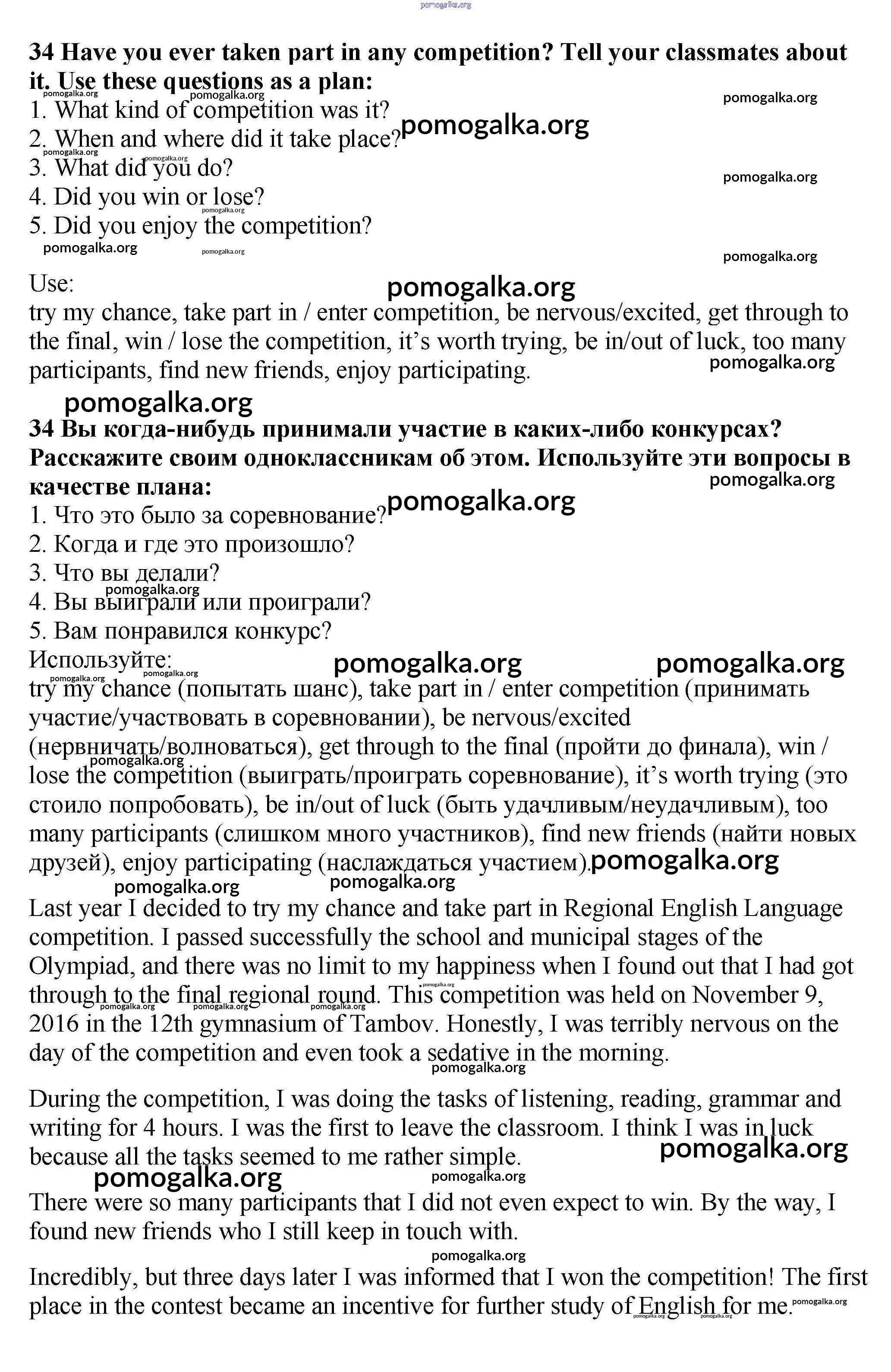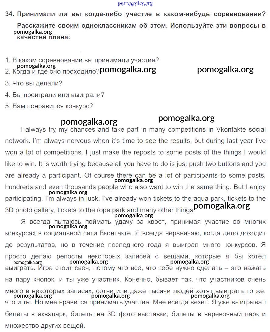 Готовые ответы - Английский язык 7 класс Enjoy English Биболетова М.З. - exercise unit 1 34