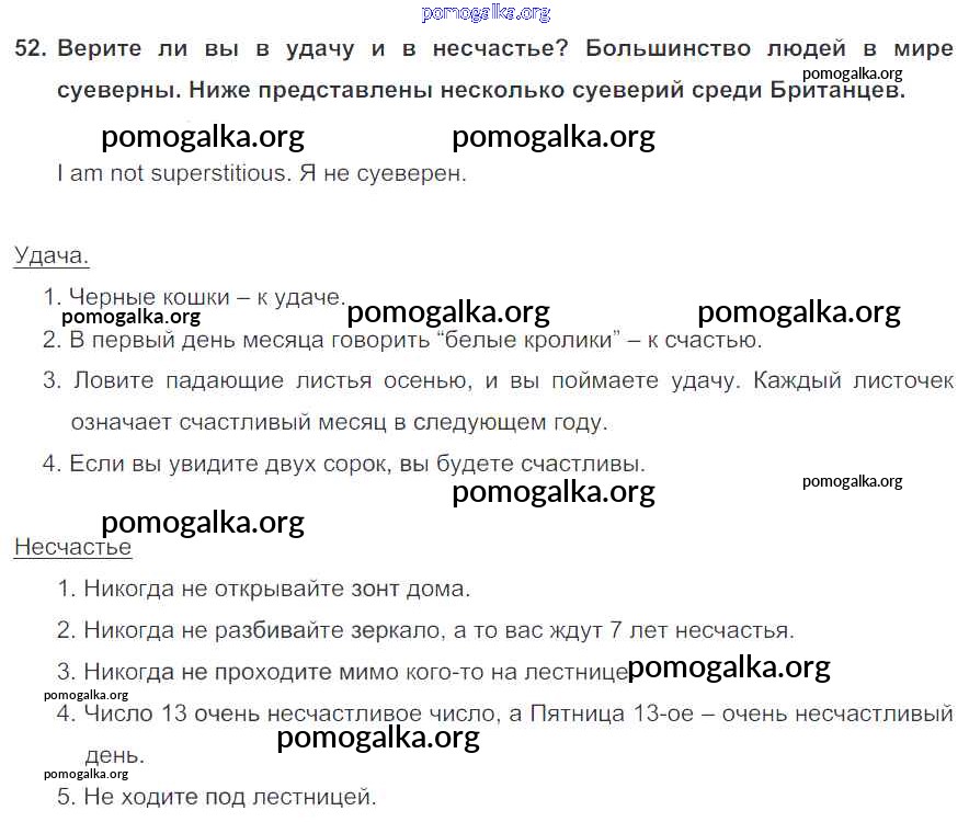 Готовые ответы - Английский язык 7 класс Enjoy English Биболетова М.З. - exercise unit 1 52