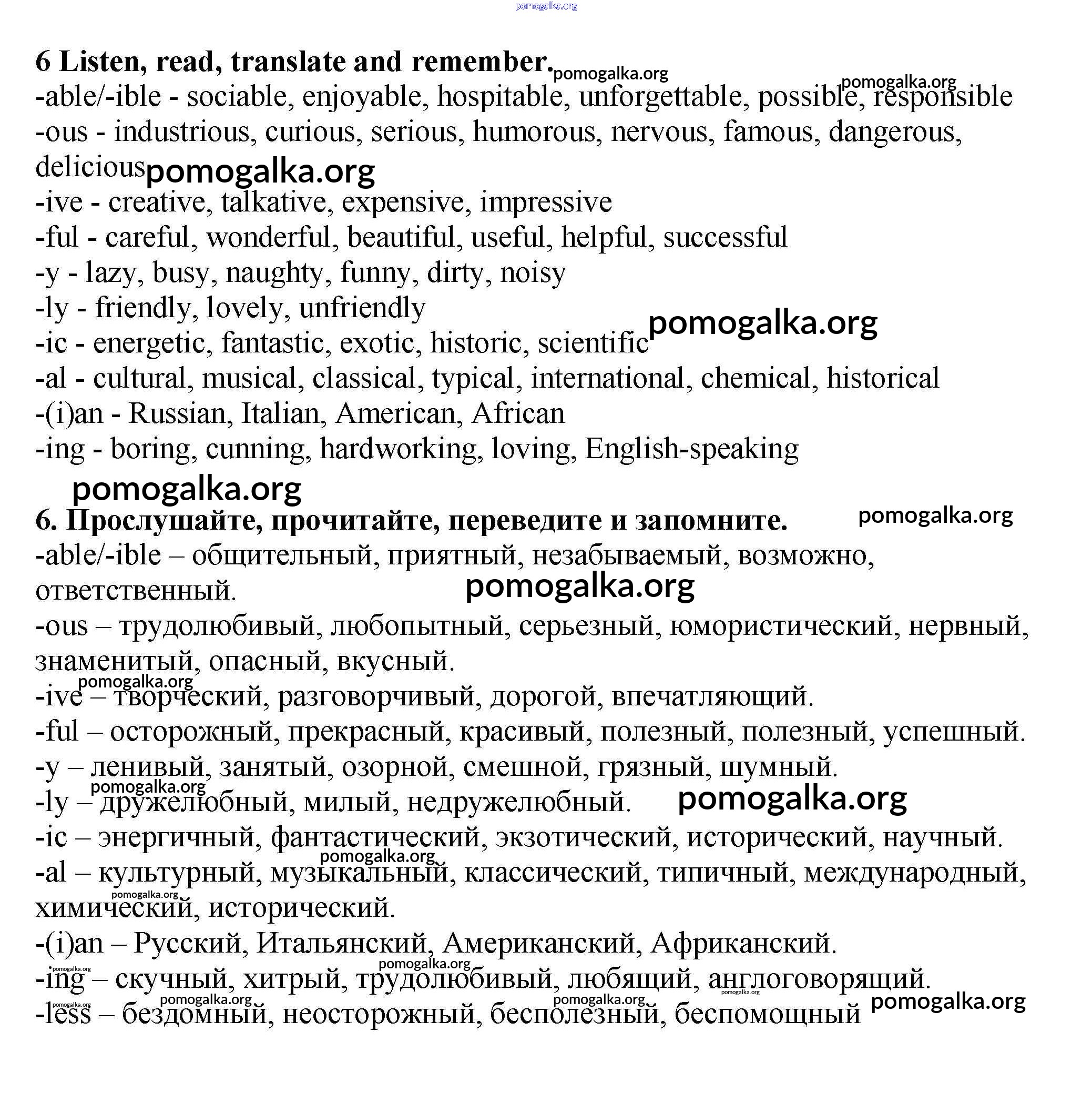 Готовые ответы - Английский язык 7 класс Enjoy English Биболетова М.З. - exercise unit 1 6