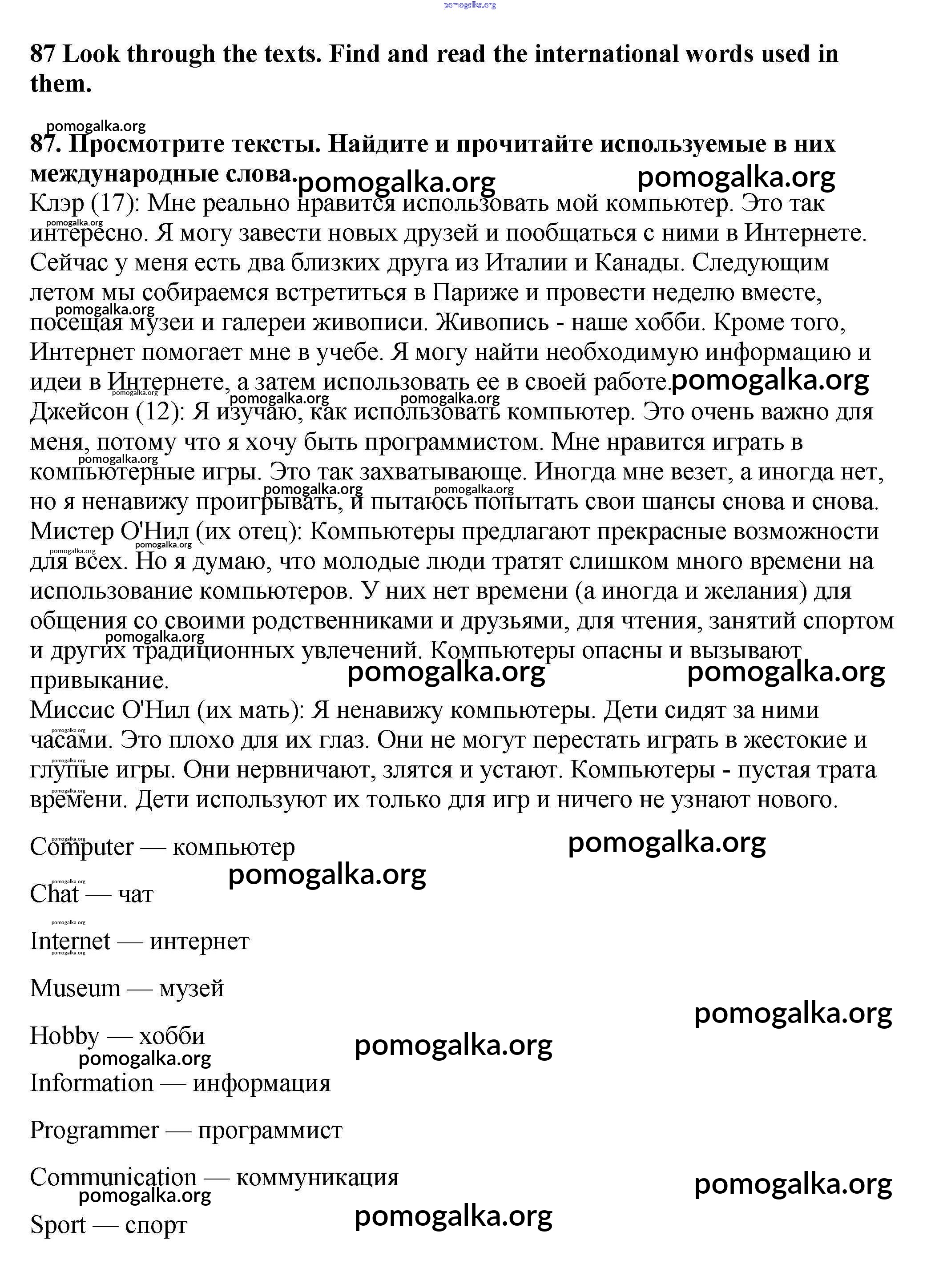 Готовые ответы - Английский язык 7 класс Enjoy English Биболетова М.З. - exercise unit 1 87