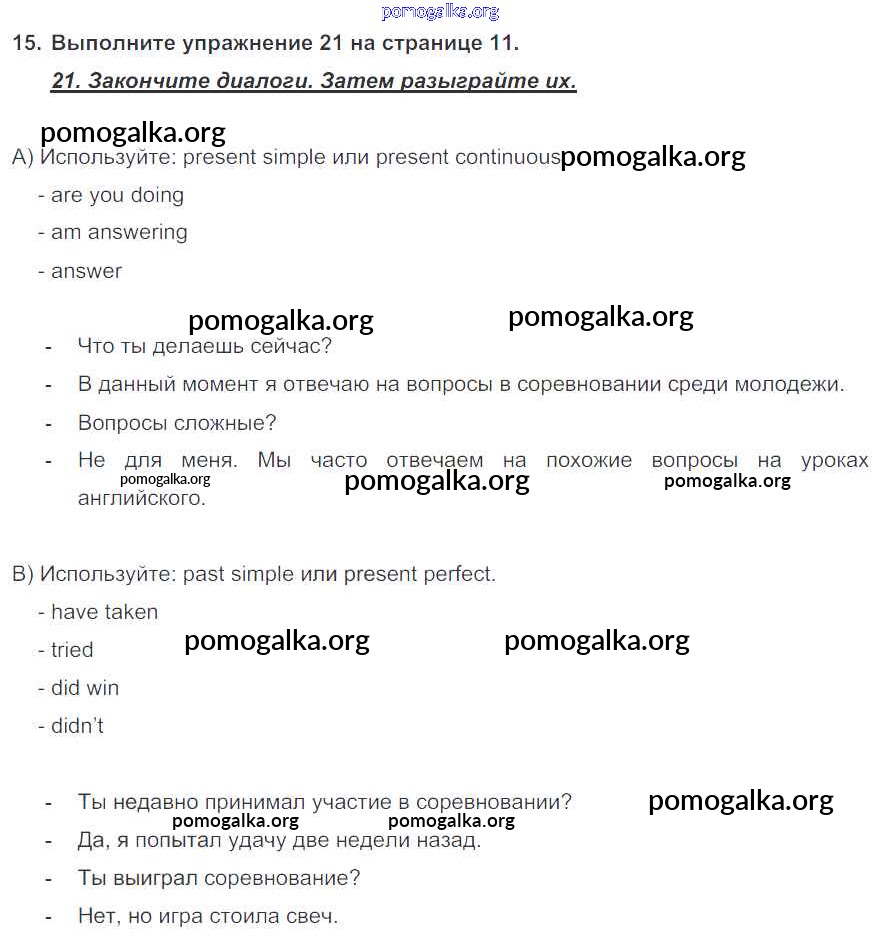 Готовые ответы - Английский язык 7 класс Enjoy English Биболетова М.З. - homework unit 1 15