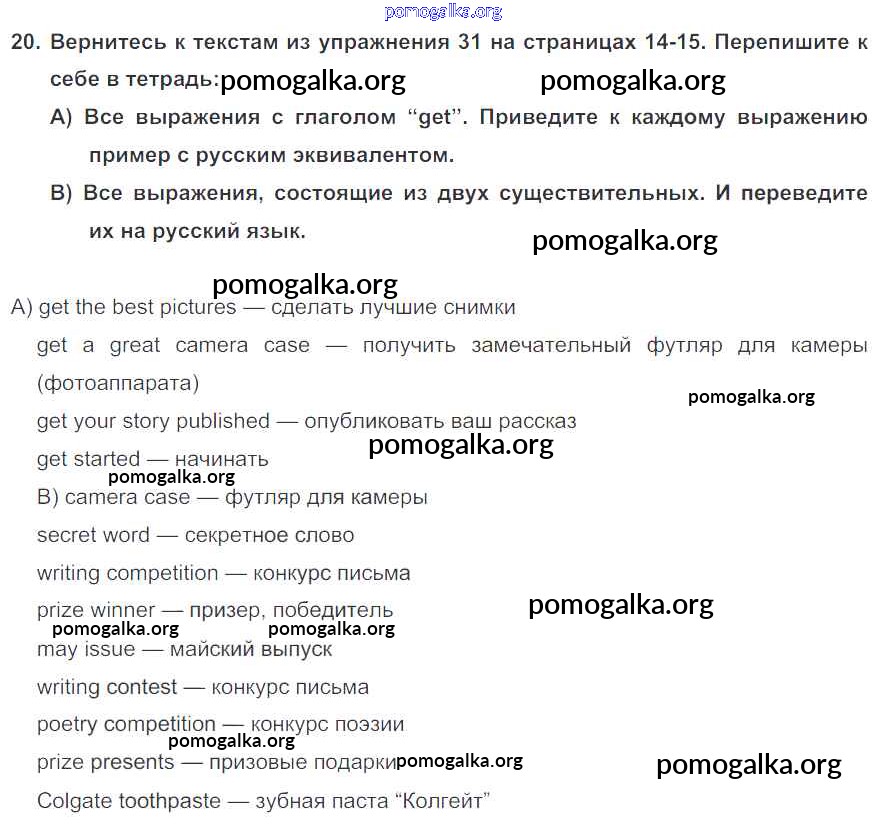 Готовые ответы - Английский язык 7 класс Enjoy English Биболетова М.З. - homework unit 1 20
