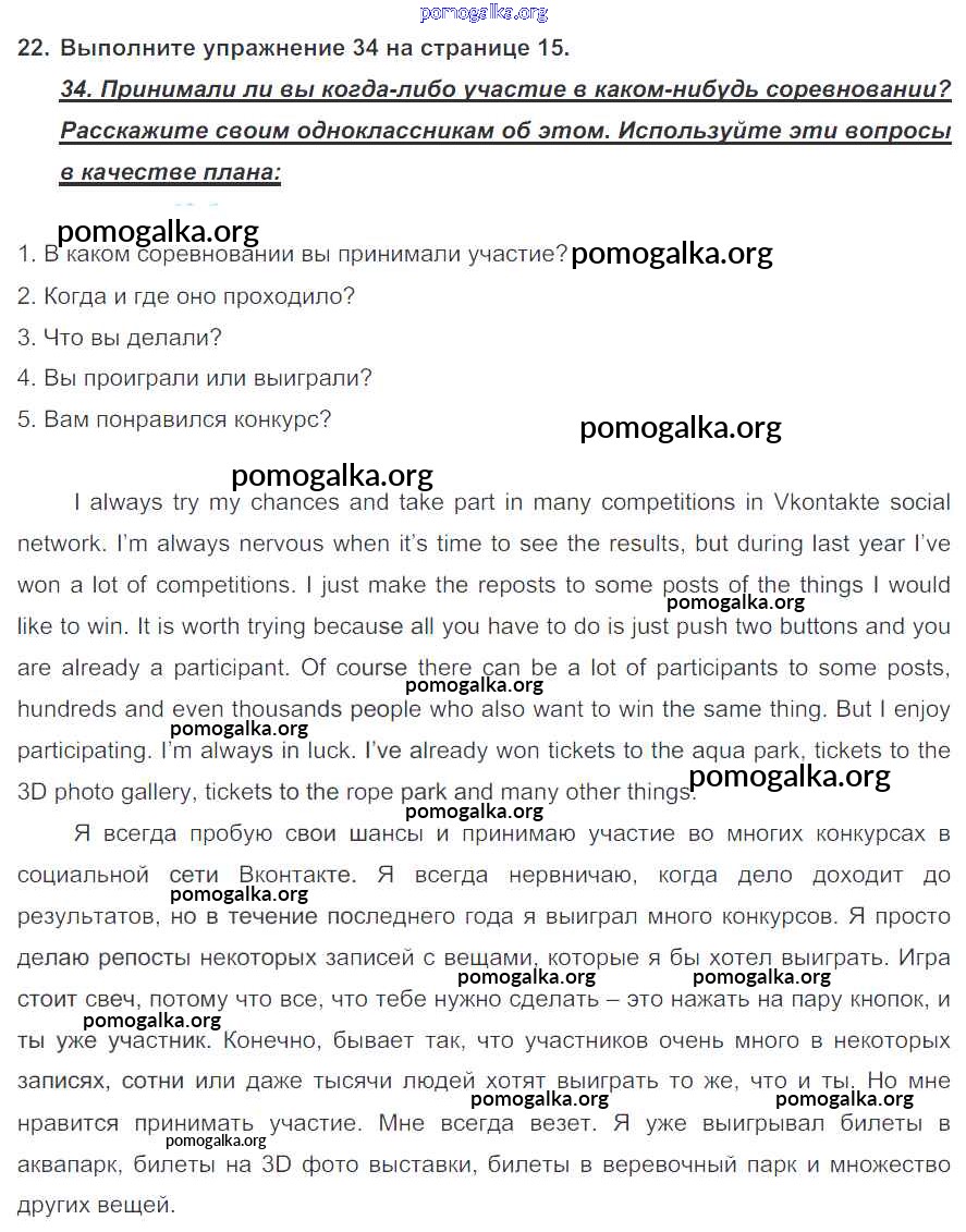 Готовые ответы - Английский язык 7 класс Enjoy English Биболетова М.З. - homework unit 1 22