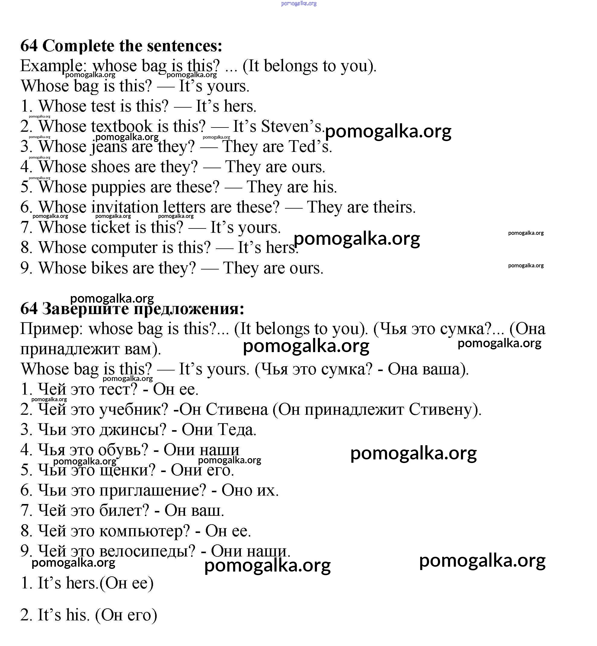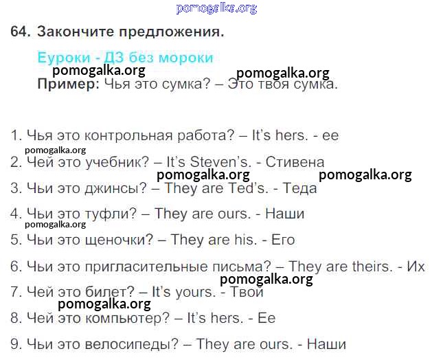 Готовые ответы - Английский язык 7 класс Enjoy English Биболетова М.З. - exercise unit 3 64