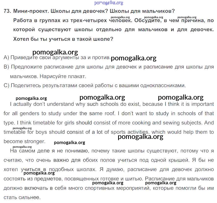 Готовые ответы - Английский язык 7 класс Enjoy English Биболетова М.З. - exercise unit 3 73