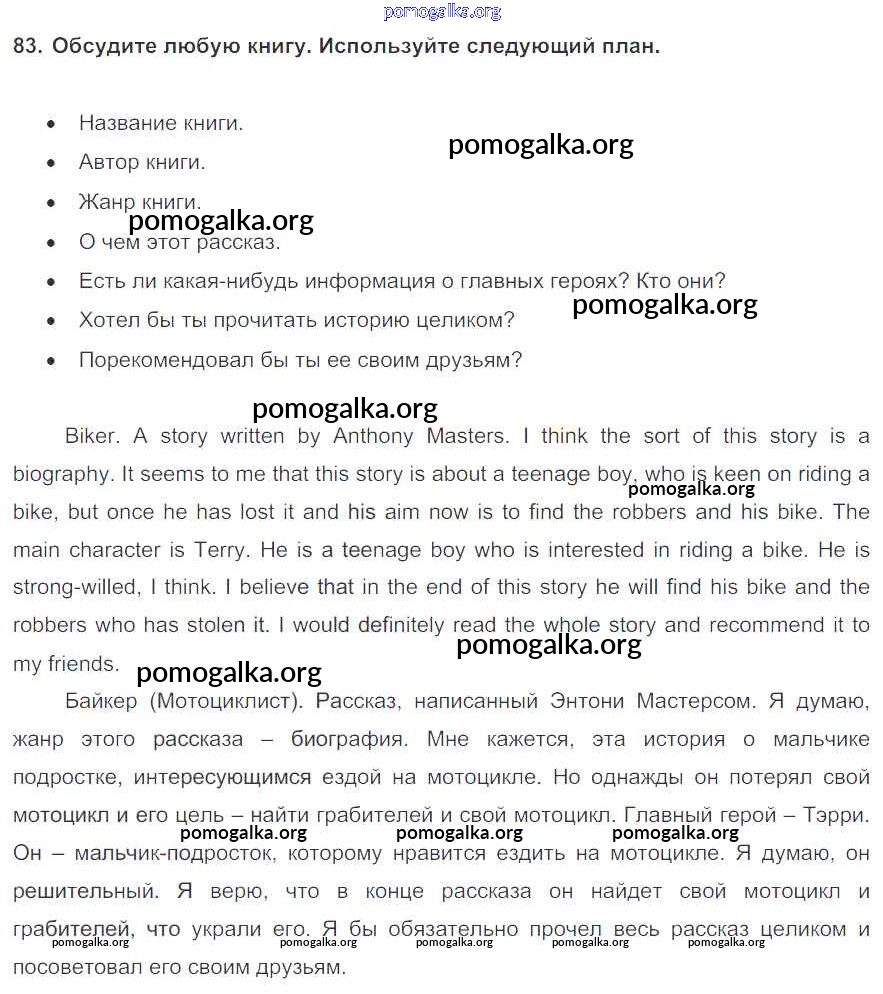 Готовые ответы - Английский язык 7 класс Enjoy English Биболетова М.З. - exercise unit 3 83