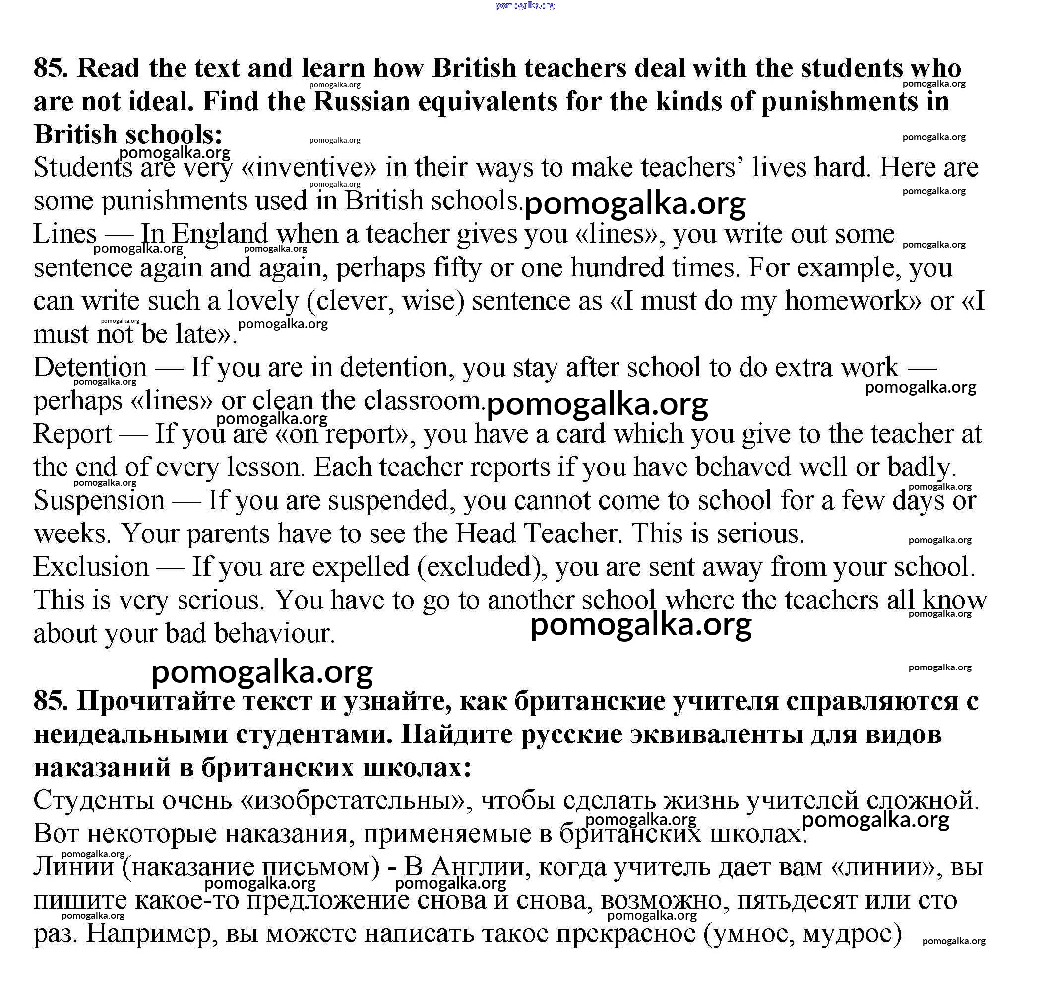 Готовые ответы - Английский язык 7 класс Enjoy English Биболетова М.З. - exercise unit 3 85